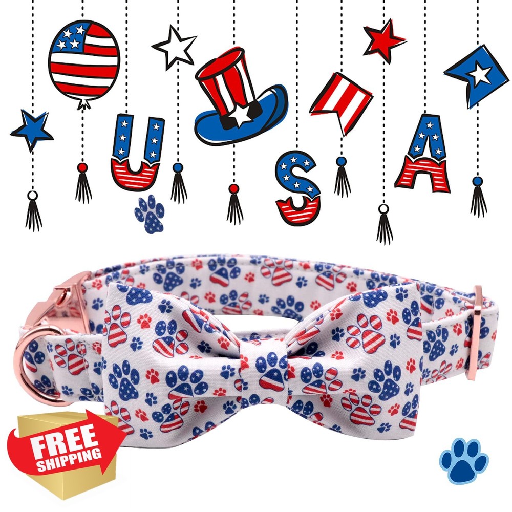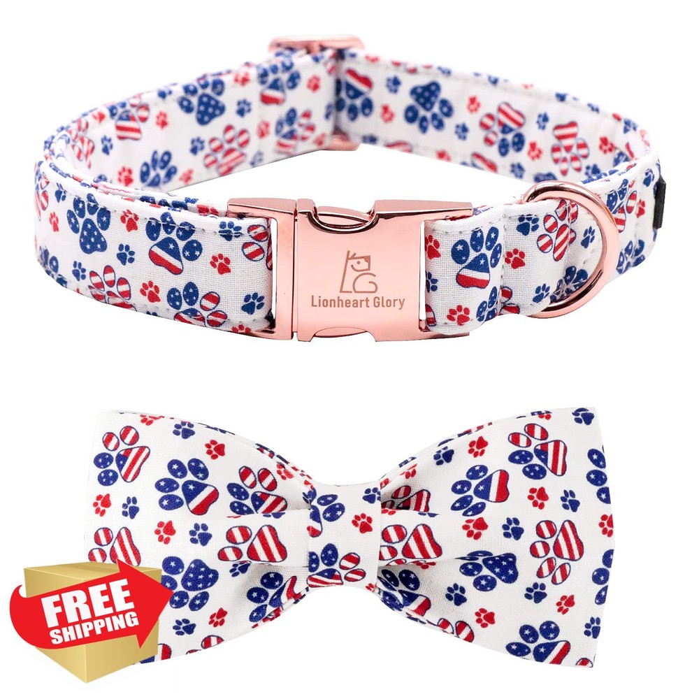 Lionheart Glory American Flag Dog Collar Bow Tie 4th July Small Dog Gift Features SUPERIOR MAERIAL : Made of pure cotton, which imparts softness and comfatable to the product. Made with weled D-ring to add durability. The straps are adjustable to provide maximum comfort and reliable fit, can be adjusted for all kinds of dog shapes,perfect for extra small, small, medium and large dog. UNIQUE DESIGN : The unique and lovely design is perfect for showing off your pup's beauty and personality or as a dog gift, instead of just the basic black or red HANDMADE BOW : Each dog bowtie is attached to collar by using two elastic straps and bows all handmade. The elastic positioned each side of the bow prevents it from moving around on the collar. We do the double box stitch at all of the stress points for added strength. SIZE : XS Collar (Width:5/8" Length : 8-12"); XS Bow=(length:3.25", width : 1.75"). You need measure your dog neck length before buy the collar. BEST SERVICE : Don’t hesitate to contact me if you have any requests or questions about collar or size, I'd love to help you what can I do. Shipping Free & Fast Shipping: We offer free shipping to most of the USA with a normal delivery time of 3-7 days. However, due to the current situation, additional delivery time (up to 3 weeks) may be required for some items. Alternative Carriers: We may use alternative carriers (e.g., USPS, FedEx, UPS) to ensure your package arrives safely and on time. Due to the use of multiple carriers, we are unable to provide a tracking number automatically. Handling Time: Orders are processed and shipped within 1-2 business days of receiving cleared payment. Shipping Restrictions: Shipping to Alaska, Hawaii, Puerto Rico, Guam, and other US territories may incur shipping charges or delivery restrictions. Please contact us before ordering, or your order can be refunded/cancelled. State Restrictions: Certain items may not be shipped to California due to state regulations. Contact for Tracking Updates: If you require tracking updates or have any concerns about the delivery of your order, please feel free to contact us, and we will be happy to assist you. Return Policy 30-Day Hassle-Free Returns: If you are not completely satisfied with your purchase, you can return the item for free within 30 days of receiving it for a full refund or exchange. Easy Return Process: Contact us, and we will provide you with a prepaid return shipping label and detailed instructions. No Restocking Fee: There are no restocking fees for returns. However, the buyer is responsible for return shipping costs if the return is not due to a seller"s error. Refund Processing: Refunds will be processed within 1 business day of receiving the returned item in its original condition. Feedback Your feedback is extremely important to us. We strive to provide the best products and customer service possible. If you are satisfied with your purchase, please take a moment to leave us a positive review. If you have any concerns or issues with your order, please contact us before leaving negative feedback. We are committed to resolving any problems and ensuring your satisfaction. Contact Us If you have any questions or concerns, please feel free to reach out to our customer support team. You can contact us through the eBay messaging system. We are available Monday to Friday, 9:00 am to 5:00 pm EST, and we will do our best to respond to your inquiry within 24 hours. Thank you for supporting our small family business! ]]>