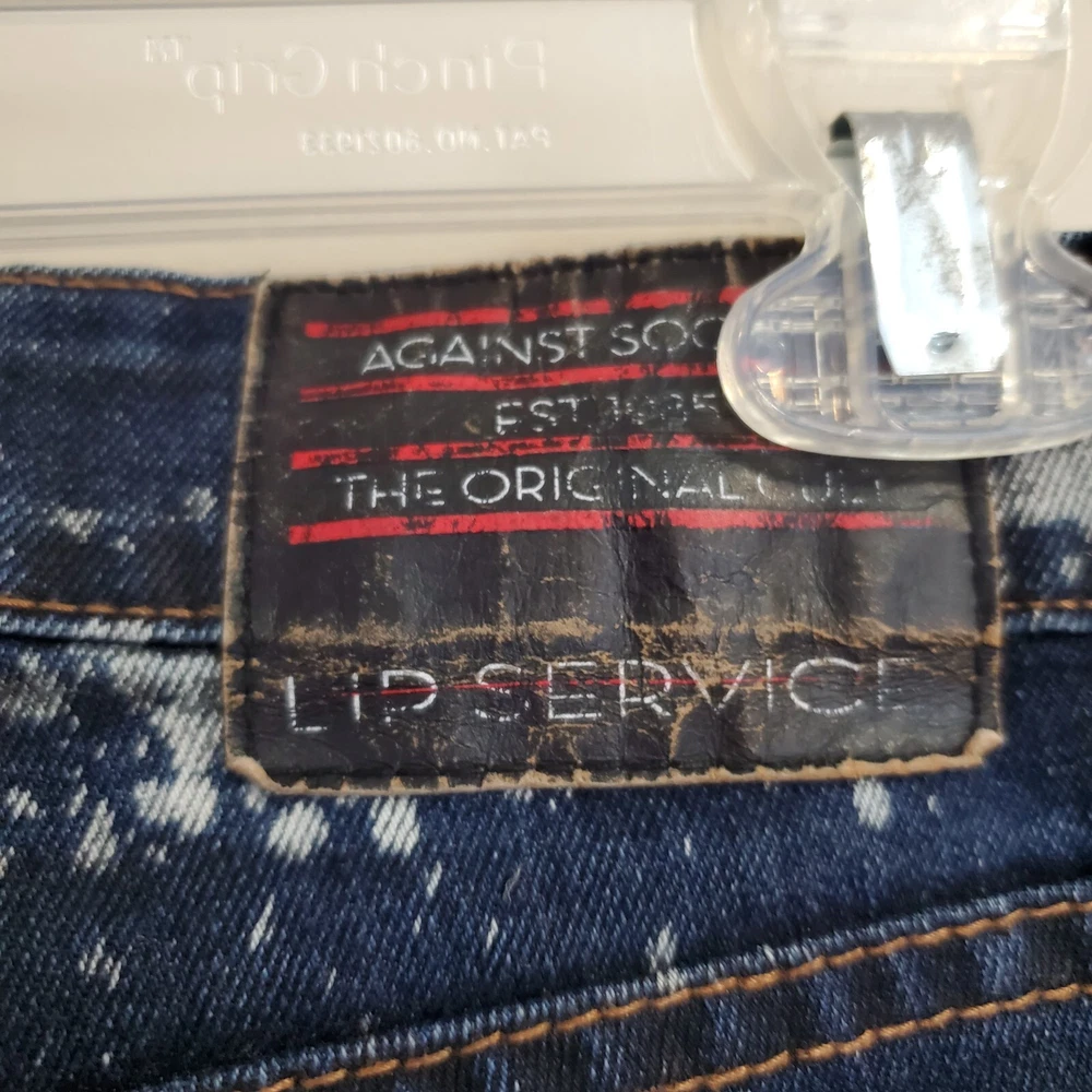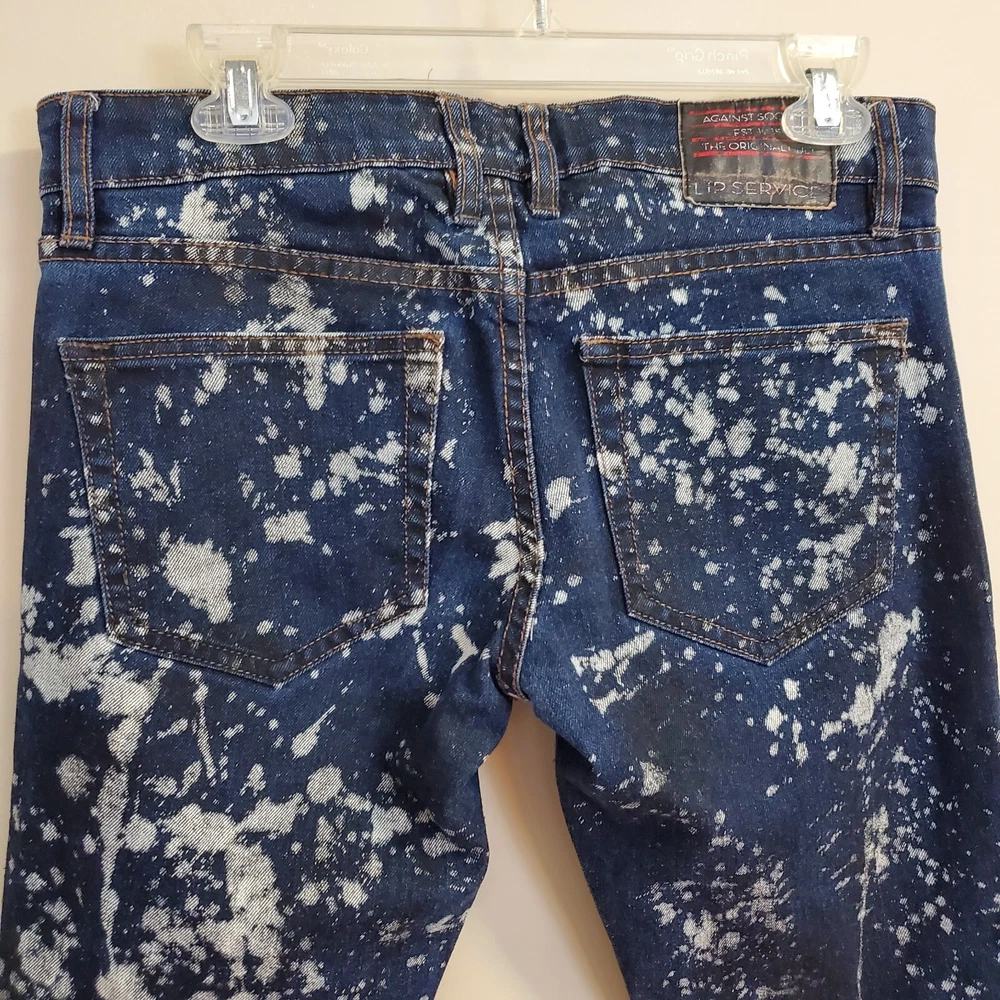Lip Service Kill City Stretch Junkie Fit Bleach Splatter Jeans Size 30x 32 Punk Very good pre-owned condition. No flaws or excess wear noted. Skinny fit, some stretch, button fly Waist: 30" Front rise: 8.5" Inseam: 32" Leg opening at the bottom: 6" across I'm happy you found my listings - I list new items and ship items every day. Very happy to combine shipping. If you have any questions, please ask.