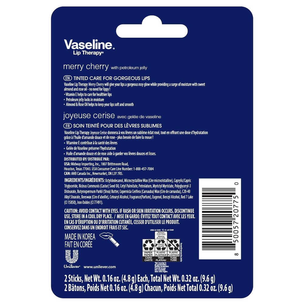 Lip Therapy Stick Twin Pack – Merry Cherry Holiday Limited Edition (2-Pack) Soothes and Hydrates: Lip Therapy, tinted care for gorgeous lips. With a hint of Almond and Rose Oil, it soothes and softens leaving your lips feeling hydrated while providing a slight tint. Convenient Stick Format: This handy pocket-sized lip balm has a non-sticky and non-greasy formula which spreads easily to deliver moisture to damaged lips. On-the Go Moisturization: Whether in your pocket, desk, or car, you can always be prepared to help protect and soothe your lips. Shipping We offer FREE shipping on all orders! We ship within Three business days of payment, usually sooner. We use a selection of shipping services such as UPS, FedEx, USPS etc. We only ship to the lower 48 states, no APO/FPO addresses or PO Boxes allowed. Local pickups and combined shipping options are not provided at this time. Return You can return a product for up to 30 days from the date you purchased it. Any product you return must be in the same condition you received it and in the original packaging. Please keep the receipt. Payment We accept payment by any of the following methods: PayPal Please pay as soon as possible after winning an auction, as that will allow us to post your item to you sooner! Feedback Customer satisfaction is very important to us. If you have any problem with your order, please contact us and we will do our best to make you satisfied. Contact Us If you have any queries, please contact us via ebay. We usually respond within 24 hours on weekdays. Please visit our eBay store to check out other items for sale! Thank you for shopping at our store.