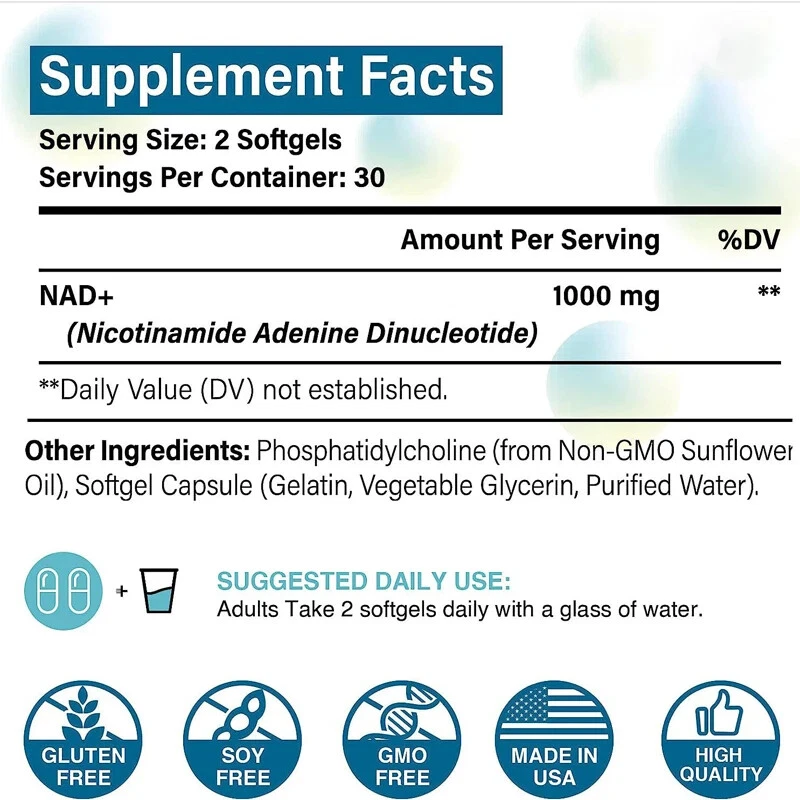 The highly available NAD+formula - Maripolio's liposome NAD+supplement enhancement formula contains 1000 milligrams of liposome NAD+per serving. Each bottle contains 60 soft capsules for a 30 day dosage. Our brand possesses highly effective liposome NAD+in the current market. Maximizing absorption from leading liposome technologies - regardless of the type of supplement, absorption is the top priority. Liposome NAD+effectively utilizes phosphatidylcholine to create liposomes, helping your body absorb the entire NAD+more effectively and achieve maximum absorption. Effectively increasing NAD+levels - NAD+is crucial for regulating energy production and pivotal cellular processes in the body. 1000 milligrams of True&Pure NAD+supplements per serving. Liposome NAD+can help you directly and effectively increase NAD+levels. Just purchase one bottle to save more money. Amazing benefits - NAD+levels decrease with age. NAD+supports the body's ATP production, providing you with energy boost. Maripolio's liposome NAD+provides abundant NAD+, which is an important coenzyme supporting your body's daily functions, aging defense, and brain function.