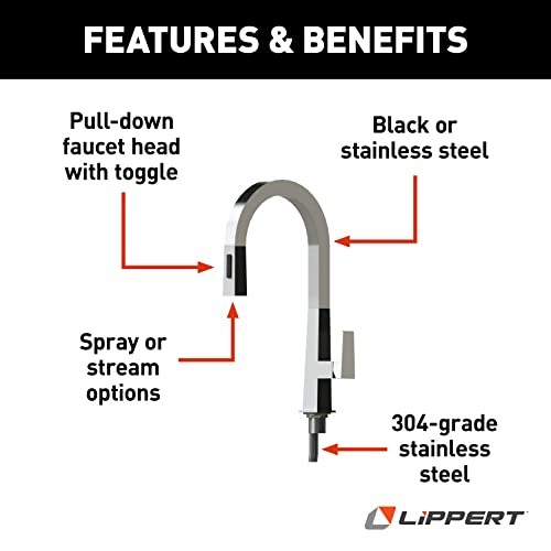 Menu 1. We require immediate payment. 2. We currently accept payment via eBay managed payments only. 3. Once payment is cleared, we will dispatch your shipment within 1-3 business days. Please refer to the "Shipping" tab for more information regarding shipping speed to your destination. Lippert Flow Max Pull-Down Kitchen Faucet - Stainless Steel Product description MANEUVERABILITY — The flexible, pull-down faucet head with toggle allows you to move your faucet head right w you need it DURABILITY — All our residential and RV faucets are constructed from 304-grade stainless steel for added strength and durability VERSATILITY — The faucet toggle gives you the freedom to choose either a spray or stream setting to maximize your cleaning ability SLEEK DESIGN — Created with a stylish black or stainless steel finishes, our faucets provide households and RV interiors with a high-end, modern look EASY UPGRADE — Compatible with our lineup of stainless steel sinks, Lippert makes it easy to transform your kitchen with style and ease PLEASE MESSAGE US IF YOU HAVE ANY OTHER QUESTIONS, AND MANY THANKS FOR READING ALL OF THIS. Copyright ©#. All Rights Reserved.