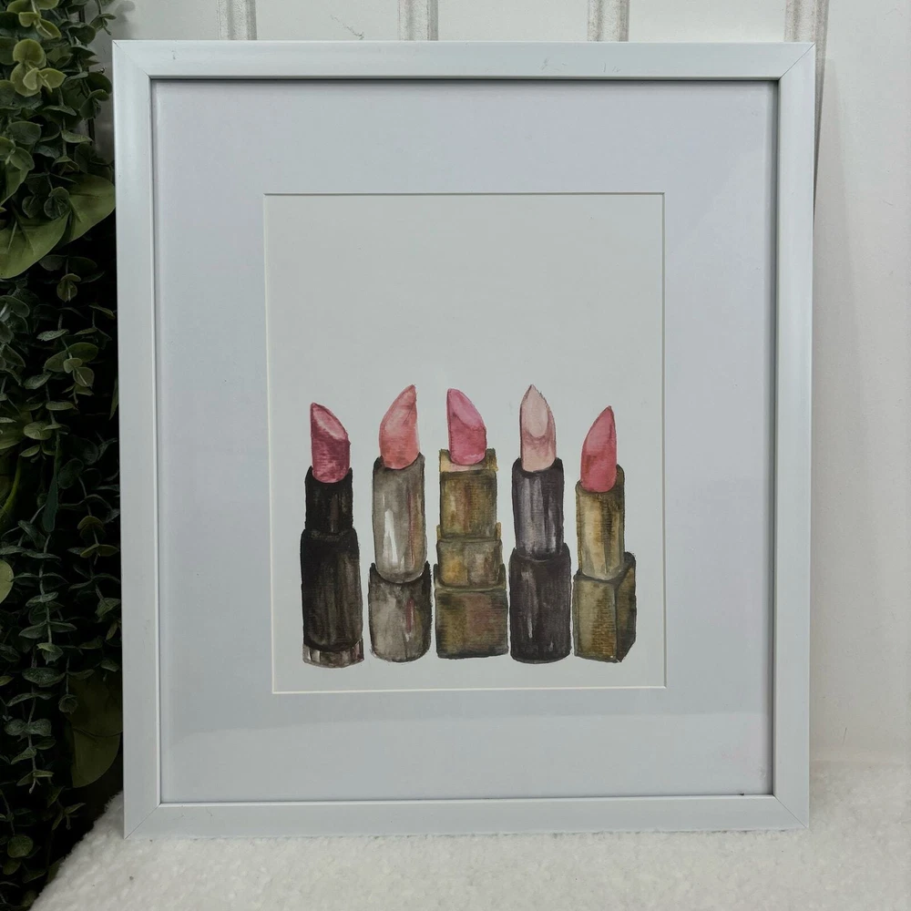 Condition: pre-loved, overall Great, some scuffs on frame (see photos) Lipstick Wall Art Home Decor White Frame #lipstick #beauty #makeup #glam #decor 14 inches x 16 inches x 0.5 inches H51
