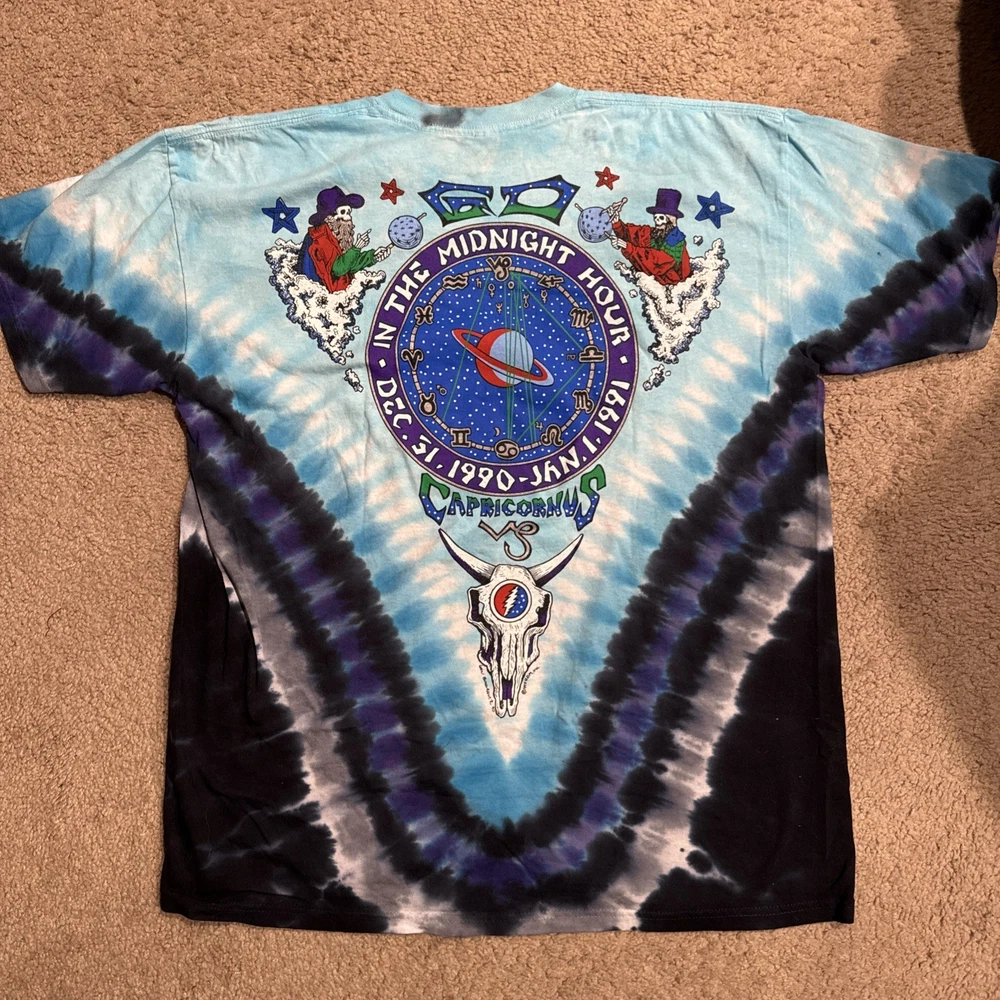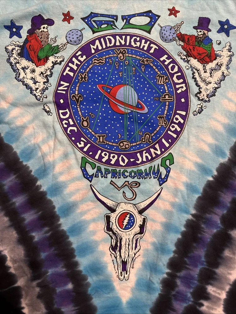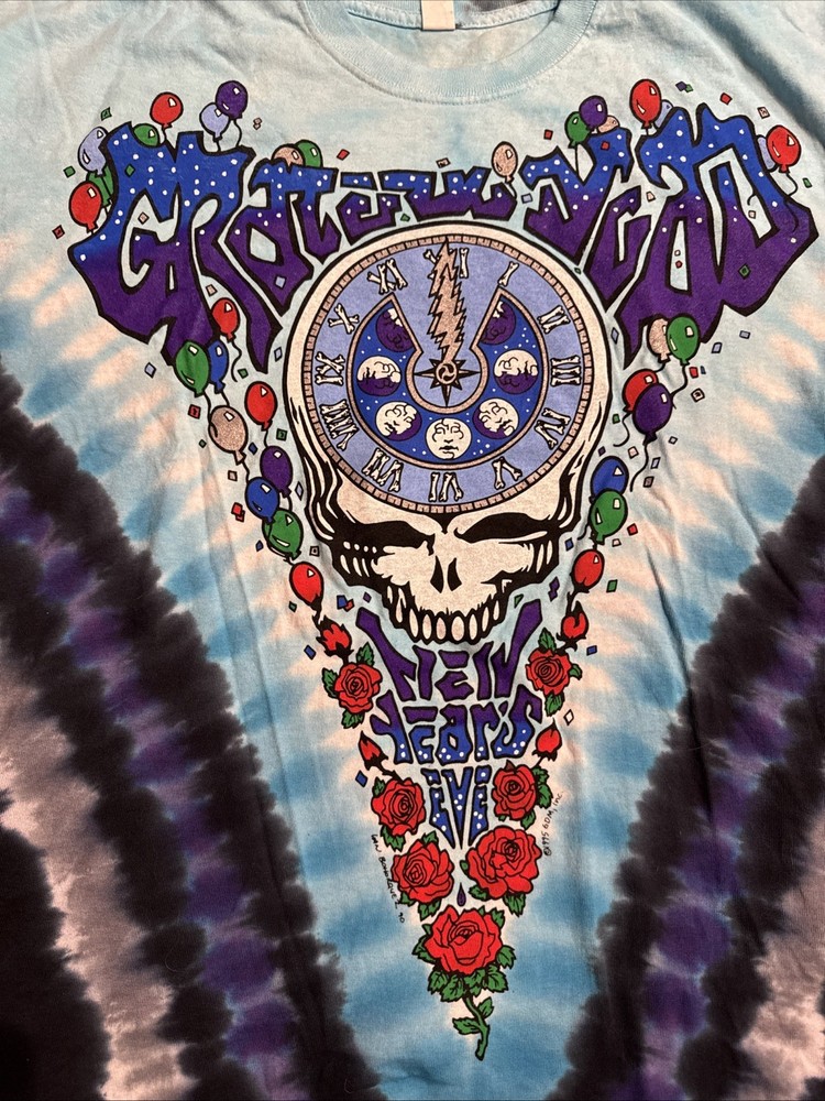 Elevate your wardrobe with the Liquid Blue Grateful Dead New Years Eve Tie-Dye Shirt, a vibrant addition that captures the essence of the iconic band's spirit. Crafted for both comfort and style, this regular fit, short-sleeved tee is a versatile piece that complements any casual outfit. Available in a range of unisex adult sizes, it caters to a diverse fit preference. The shirt features a stunning multicolored tie-dye design, paying homage to the legendary Grateful Dead shows. It's constructed by Liquid Blue, a brand known for its quality and attention to detail, ensuring that this shirt is not only a statement piece but also a durable addition to your collection. Whether you're out with friends or enjoying a concert, this T-shirt is sure to turn heads and spark conversations.