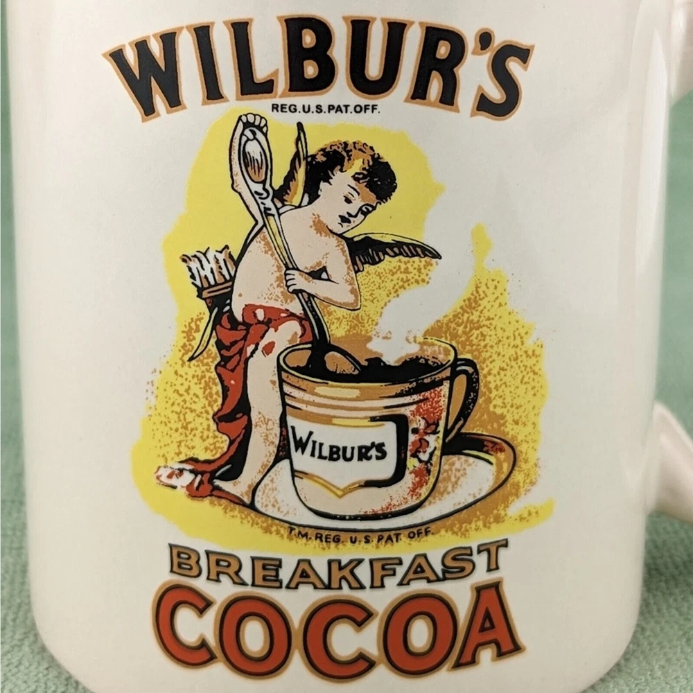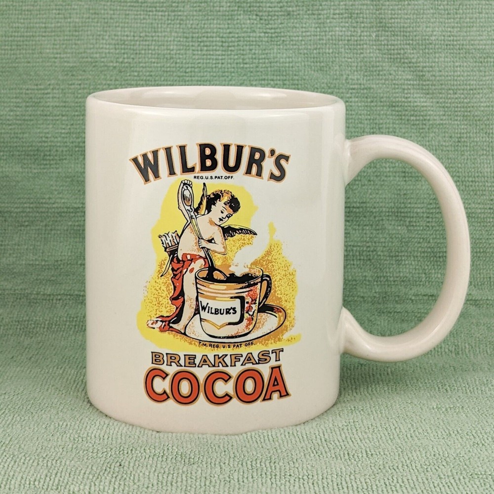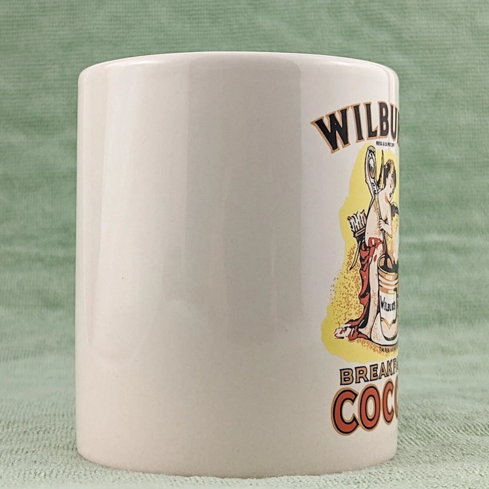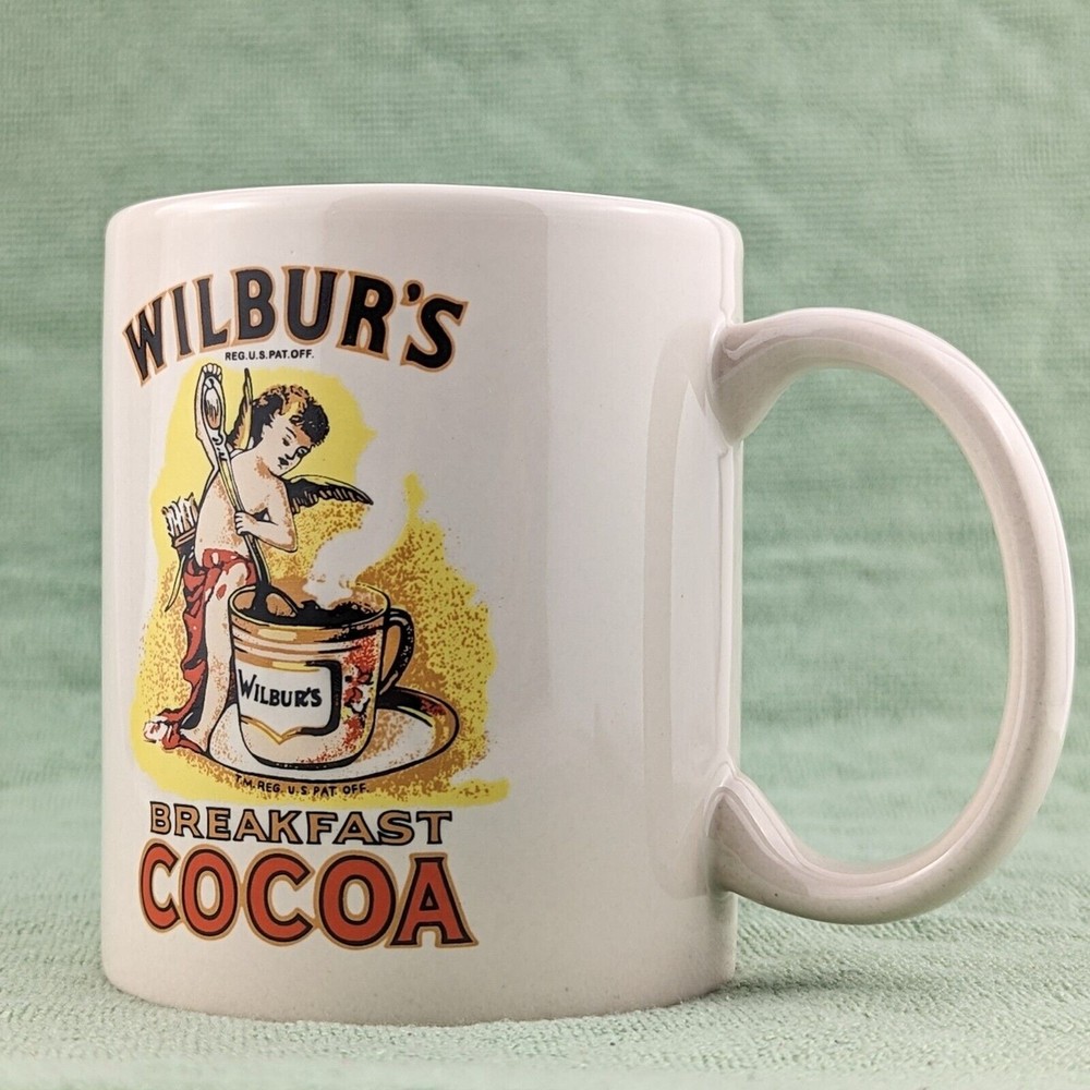 Wilbur's Breakfast Cocoa Liquid Logic Ceramic Coffee Mug • Height: 3.75" • Diameter: 3" • Capacity 8-10 oz • Cream / off-white color featuring Wilbur's Breakfast Cocoa logo Pre-owned mug in excellent used condition with no chips, cracks, or staining. Great for coffee, hot cocoa, tea, or your favorite warm beverage!