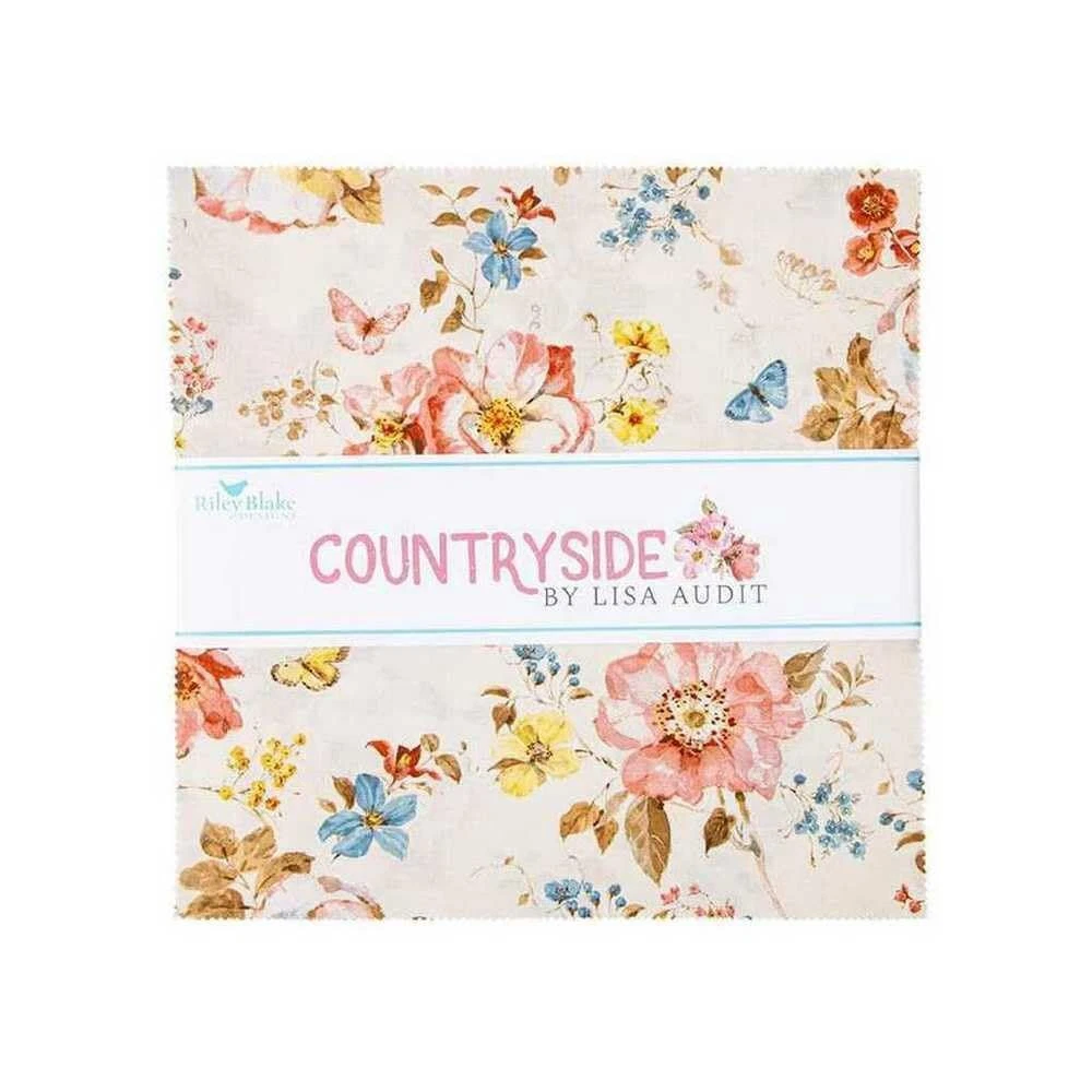 Fabric bundle of 42 10-inch squares from the Countryside collection by designer Lisa Audit for . Pack your bags and escape the city with Lisa Audit's dreamy designer fabric collection, Countryside. This picturesque collection features Lisa's elegant watercolor florals, butterflies, countryside scenery, and geometrics. Your quilts, home décor, and apparel projects will stand out in Lisa's red, coral, sand, and storm color palette. With this delightful mix, be swept away to small countryside towns full of antique shops, farmer's markets, covetable restaurants, and one-lane roads full of wildflowers -- enticing all your senses! Countryside collection from Designed by Lisa Audit 10" Stacker (Layer Cake) includes 42 10-inch squares 100% Cotton; premium quilt shop quality fabric