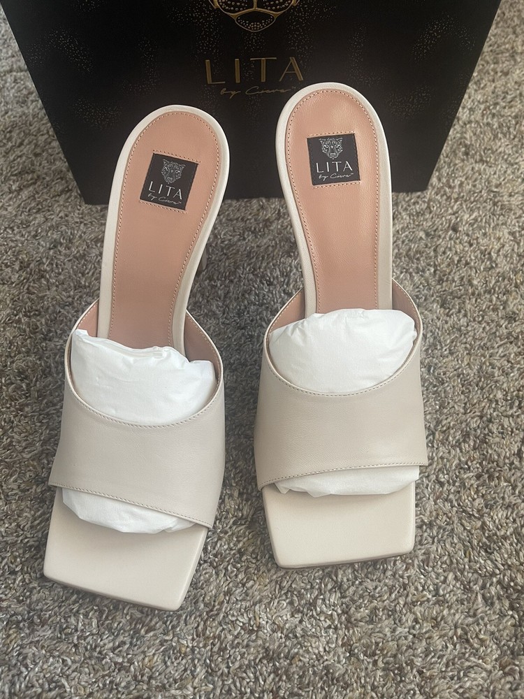 Lita by Ciara Solid Square Toe Leather Slide Size 42 Size 11 In US Color Cream Please review all pictures as this is the item you will receive. Please message me with any questions. Thank you SSA