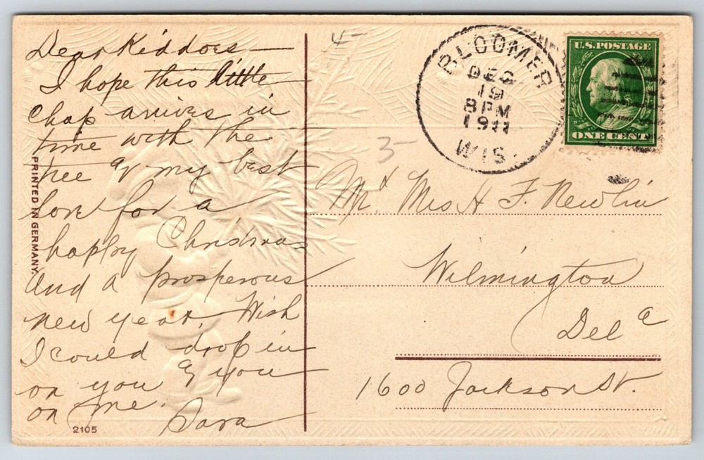 Year Manufactured: 1907 Postage Condition: Posted Country/Region of Manufacture: United States Unit of Sale: Single Unit Subject: Holiday Occasion: Christmas Type: Printed (Lithograph) Theme: Events, Holiday, Christmas Size: Standard (5.5 x 3.5 in) Time Period Manufactured: 1900-1919 Era: Divided Back (1907-1915) Number of Items in Set: 1 Features: Divided Back, Embossed Original/Licensed Reprint: Original