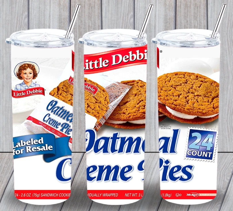 Little Debbie Oatmeal Creme Pie Multicolor 20oz Insulated Tumbler Lid Straw New