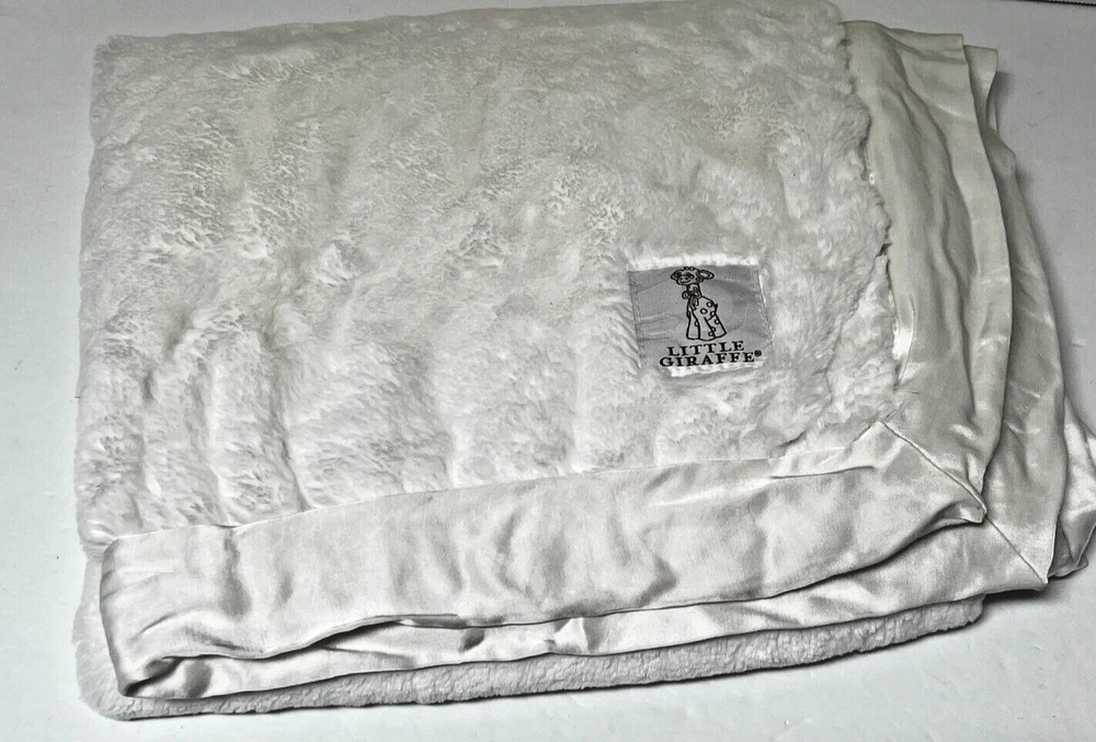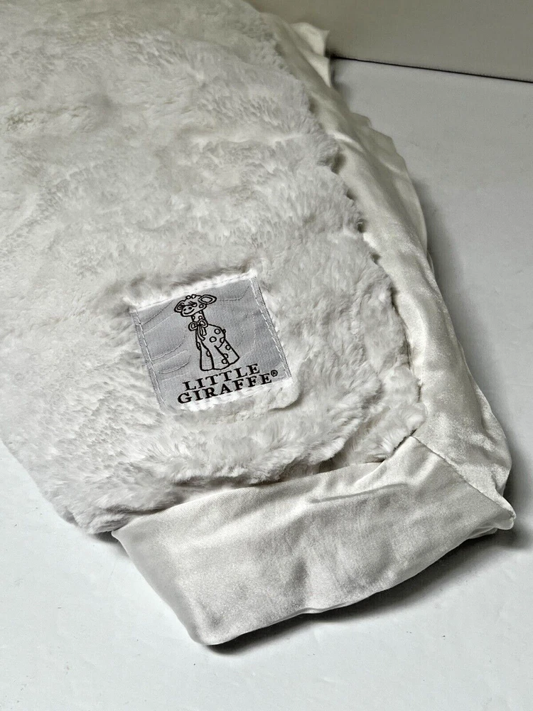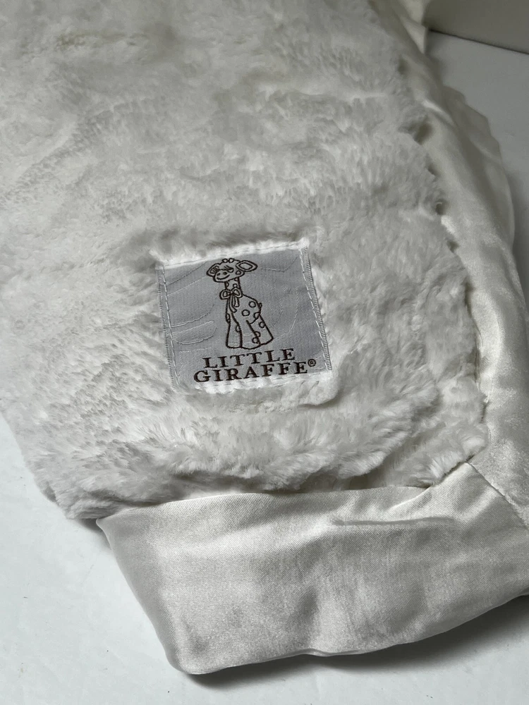 Little Giraffe WHITE Chenille Sherpa Silky Satin Trim Security Blanket Lovey EUC Approximately 35" Square wide satin trim, super soft plush fluffy crib/stroller snuggly blanket baby shower, christening gift, Excellent Condition as shown