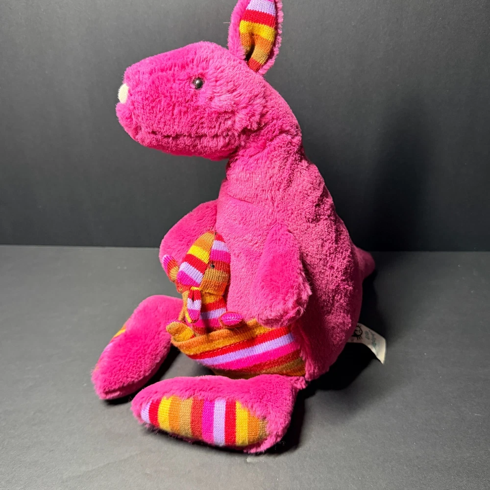 The Little Jellycat London Plush Retired 2013 Katie Joey Kangaroo is a small stuffed animal with striped feet, perfect for children aged 4 to 16 years and even adults who are fans of the Jellycat brand. Made in Indonesia, this adorable kangaroo from the Bashful character family is a collectible item that brings joy to anyone who owns it.