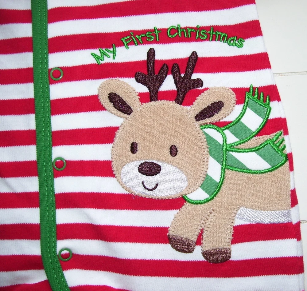 Little Me My First Christmas 1 Pc Footed Reindeer Sleeper Pajamas. Size 3 Months. New with tags. Makes a GREAT Gift! Weight: Up to 12 Pounds Height: Up to 24 Inches Smoke and Pet free home. Winning bidder to pay within 3 days listing end. Check out my other listings for more great deals! RETURN POLICY DETAILS Returns are accepted with prior approval ONLY if item is misrepresented in the listing. You must contact me first before returning an item. I do NOT accept returns for buyer choosing the wrong size/item not fitting. There are NO returns/refunds on pageant and special occasion wear.