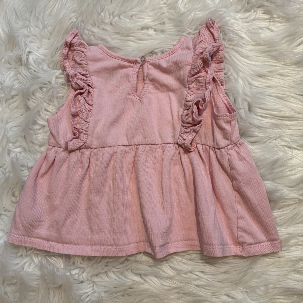 Adorable Little Me toddler girls’ 3T two-piece outfit set in a soft light pink color. Gently used and in good condition. Please Note: Pants have a small stain on the front (shown in photos). Includes a sleeveless ruffle-trim top with a peplum silhouette and matching wide-leg cropped pants. Perfect for spring and summer, playtime, daycare, or everyday wear. Smoke & Pet Free Home