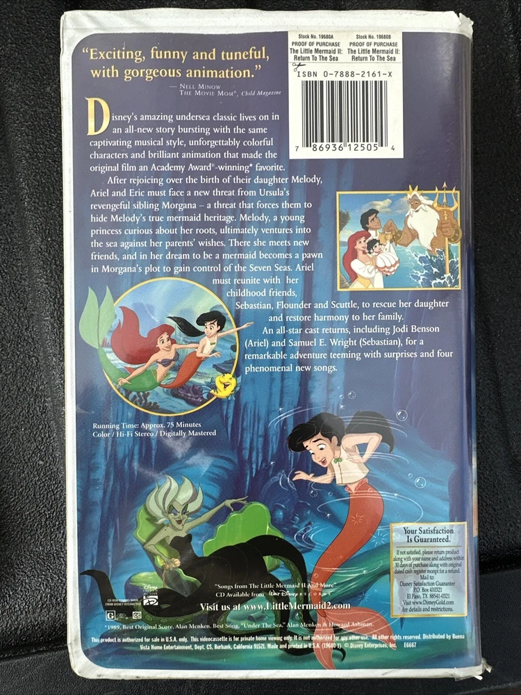 Release Year:2000gtin13:0786936125054Sub-Genre:Animation/AnimeRating:GUPC:0786936125054Country/Region of Manufacture:United StatesFormer Rental:NoEdition:Full ScreenStudio:Walt Disney VideoMovie/TV Title:Little Mermaid II-Return to the SeaGenre:Children's VideoLanguage:English