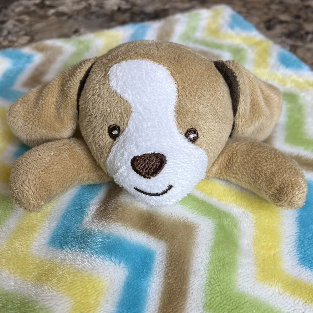 Little Miracles Puppy/Dog Chevron Zig Zag Lovey Security Baby Blanket Tag Along Materials 100% Polyester Measures 11" x 11" Some light wear from use, handling, washing, no rips or stains Please view photos for further description/condition