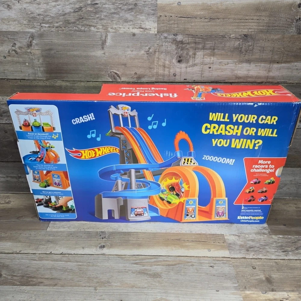 Little People HOT WHEELS Racing Loops Tower Toddler Vehicle Trackset with Sounds