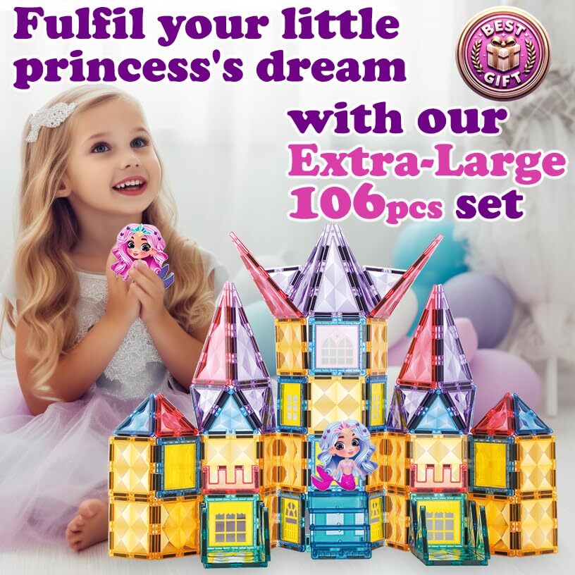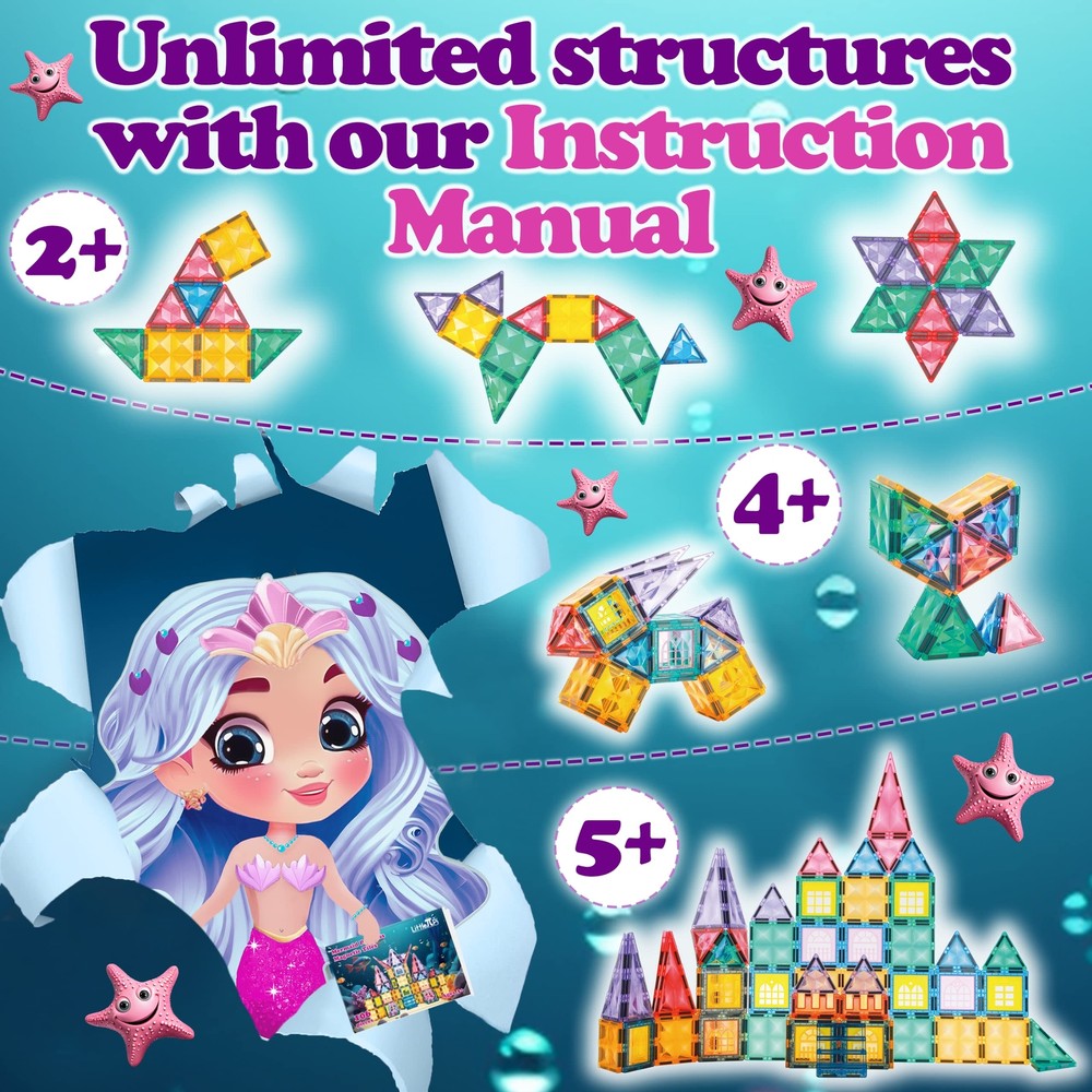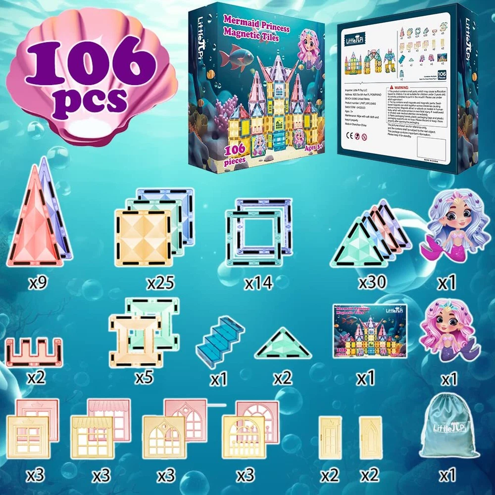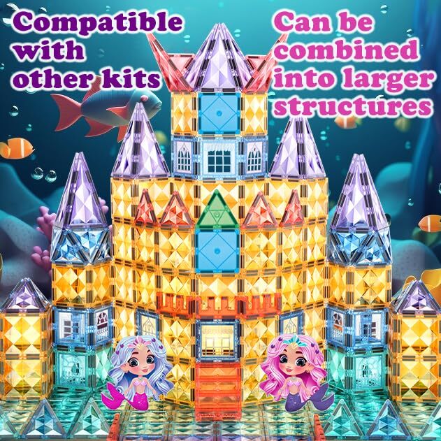 Inspiring Imagination: Unleash creativity with our magical magnets set, the perfect choice for preschool graduation gifts. Spark the imagination of your little one as they build their underwater castle Educational Play: Our magnetic toy set is not only fun, but also a valuable learning resource at home or on the go. Suitable for four, five, six, and seven year olds, it combines play and learning Perfect Gift in 2024: Inject color into pretend play with our magnetic tiles set. It's the best present for your little boy or girl aged three to eight, ideal for birthdays, Christmas, or Thanksgiving Quality & Safety: Crafted from safe, durable, food-grade ABS plastic with stronger magnets, our set ensures playtime is worry-free. Connect and stack pieces to create diverse shapes and structures Gift for Mermaid Wannabes: Minimize screen time and maximize fun with our Little Pi Mermaid Princess set. Inspire active play and foster a deep-sea adventure in the comfort of your living room!