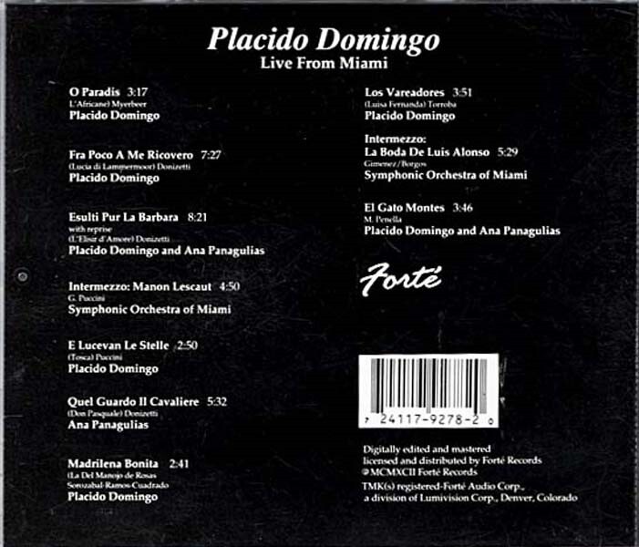 Buy more - save more 10% off 2, 20% off 3, 30% off 4 or more on all items. Buy more - save more 10% off 2, 20% off 3, 30% off 4 or more on all items. Click Here to add ChainMan Books and Music your Favorite Seller's List Title/Songwriter Time 1 O Paradis 3:17 2 Fra Poco a Me Ricovero 7:27 3 Esulti Pur La Barbara 8:21 4 Intermezzo: Manon Lescaut 4:50 5 E Lucevan Le Stelle 2:50 6 Quel Guardo Il Cavaliere 5:32 7 Madrilene Bonita 2:41 8 Los Vareadores 3:51 9 Intermezzo: La Boda De Luis Alonso 5:29 10 El Gato Montes 3:46 To Top Copyright © ChainMan Books and Music 2014 - 2023 Powered by SixBit's eCommerce Solution
