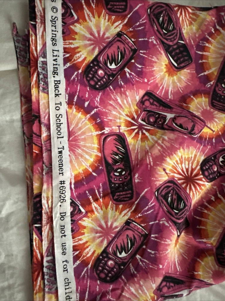 This unique fabric features a trendy mobile phones all-over pattern and is made of 100% cotton with a medium weight. It measures 42 inches in width and 2 yards in length, making it suitable for a variety of crafting and DIY projects. The fabric is perfect for creating table tops, curtains, accessories like bags and hats, loungewear, quilting, and pillows. The multicolor pattern adds a fun touch to any project and the fabric is made in the United States by Springs Industries. With no custom bundle required, this fabric is a great addition to any crafter's collection. Preowned and new All my items from smoke/pet free home Will combine shipping I don’t ship internationally
