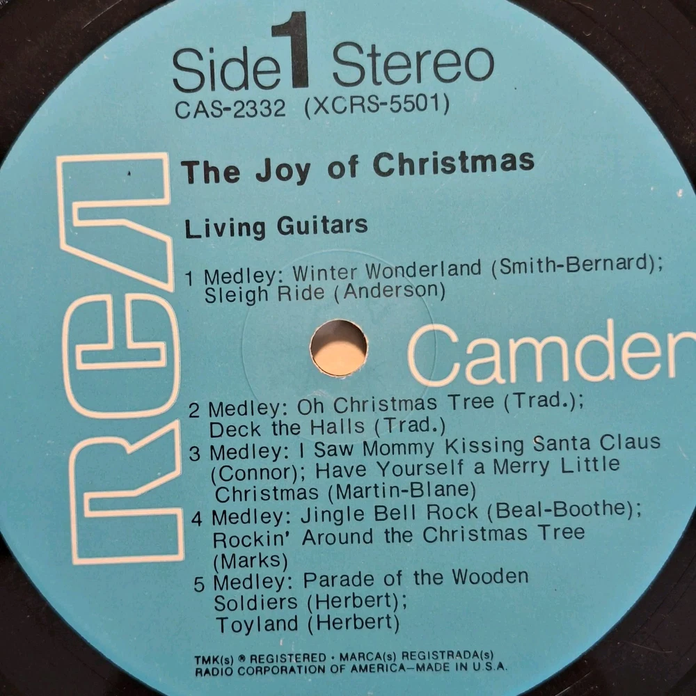 Speed:33 RPMEdition:LiveFormat:RecordInstrument:GuitarMaterial:VinylRecord Grading:Very Good Plus (VG+)Release Year:1969Type:LPRelease Title:The Joy Of ChristmasColor:BlackSleeve Grading:Very Good Plus (VG+)Country/Region of Manufacture:United StatesGenre:HolidayArtist:Living GuitarsSeller Notes:“Plays well Shrink Still on Jacket. Masterpiece on Guitar”Occasion:ChristmasCase Type:Cardboard SleeveRecord Size:12"Record Label:Camden