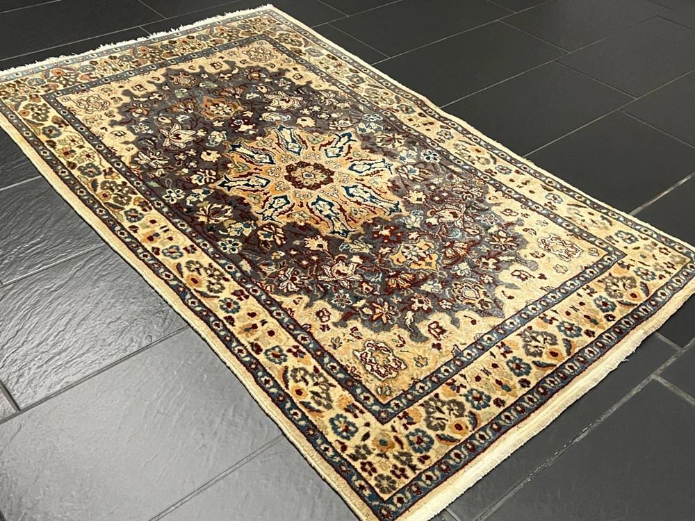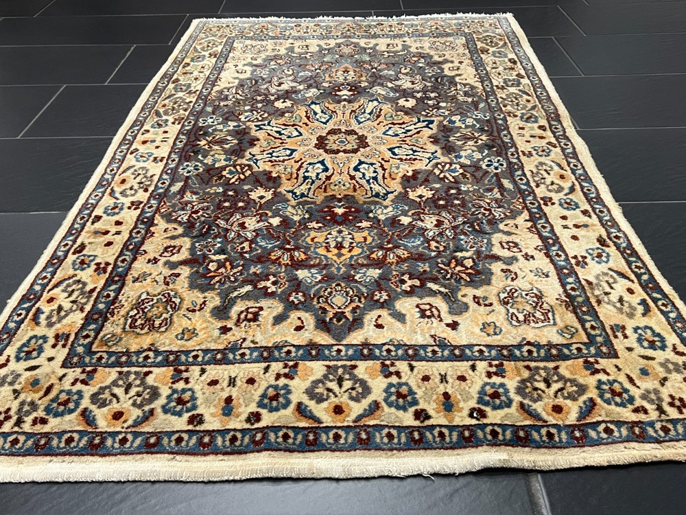 Angeboten wird ein handgeknüpfter Orientteppich Bitte betrachten Sie den Teppich mit Geduld und Aufmerksamkeit. Jeder handgearbeitete Teppich ist in seiner Zeichnung, Schönheit und Farbharmonie einmalig und deshalb ein Kunstwerk für sich. Herstellung: Handgeknüpft Maße: 167x100 cm Flor: Wolle Kette: Baumwolle interne Nummer: 4421 Echtes handgeknüpftes Unikat! ✓ mit Echtheitszertifikat! ✓ Zustand: Der Teppich ist in einem guten Gesamtzustand - Siehe Bilder. Pflegehinweise: Da es sich um einen gebrauchten Teppich handelt, empfehlen wir eine Reinigung, um seine Schönheit zu bewahren. Normalreinigung für 24,90 € pro m² Luxusreinigung für 29,90 € pro m² Gerne erstellen wir Ihnen ein individuelles Angebot für eine professionelle Teppichreinigung. Wenn sie sich für eine Reinigung entscheiden, dann geben Sie uns bitte VOR der Bezahlung Bescheid, indem sie uns eine Nachricht schreiben, damit wir ihre Rechnung anpassen. Weltweiter versicherter Versand mit UPS, GLS und DHL.