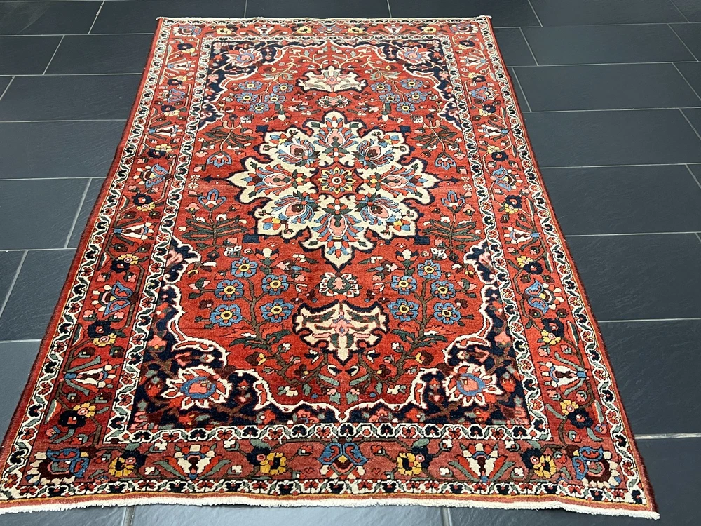 Angeboten wird ein handgeknüpfter Orientteppich Bitte betrachten Sie den Teppich mit Geduld und Aufmerksamkeit. Jeder handgearbeitete Teppich ist in seiner Zeichnung, Schönheit und Farbharmonie einmalig und deshalb ein Kunstwerk für sich. Herstellung: Handgeknüpft Maße: 205x135 cm Flor: Wolle Kette: Baumwolle interne Nummer: 4424 Echtes handgeknüpftes Unikat! ✓ mit Echtheitszertifikat! ✓ Zustand: Der Teppich ist in einem guten Gesamtzustand - Siehe Bilder. Pflegehinweise: Da es sich um einen gebrauchten Teppich handelt, empfehlen wir eine Reinigung, um seine Schönheit zu bewahren. Normalreinigung für 24,90 € pro m² Luxusreinigung für 29,90 € pro m² Gerne erstellen wir Ihnen ein individuelles Angebot für eine professionelle Teppichreinigung. Wenn sie sich für eine Reinigung entscheiden, dann geben Sie uns bitte VOR der Bezahlung Bescheid, indem sie uns eine Nachricht schreiben, damit wir ihre Rechnung anpassen. Weltweiter versicherter Versand mit UPS, GLS und DHL.