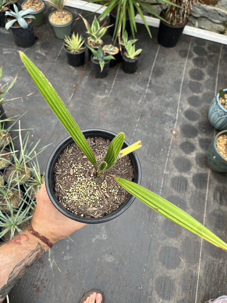 Livistonia Decora 1 Gallon. Native to Australia, this is a gorgeous palm where it’s hardy. Not very cold tolerant, safe bet to plant in zone 9a or above. Fast growing and drought tolerant. Will grow in a pot for many years in a colder climate as well. These are hard to find at this size. Selling at a great price!!!