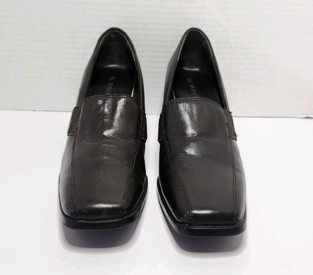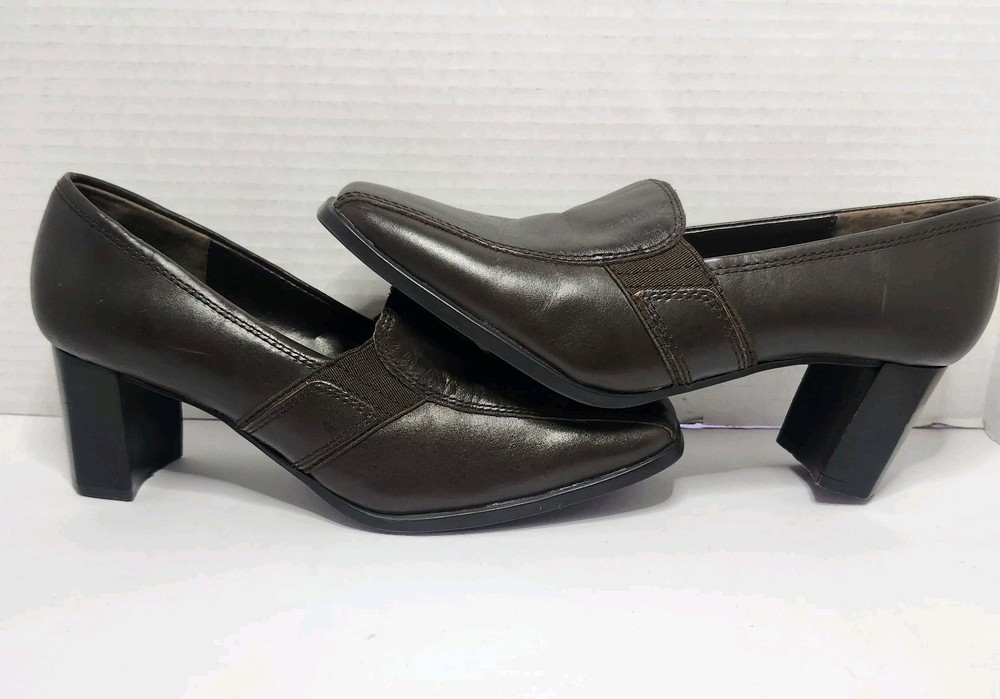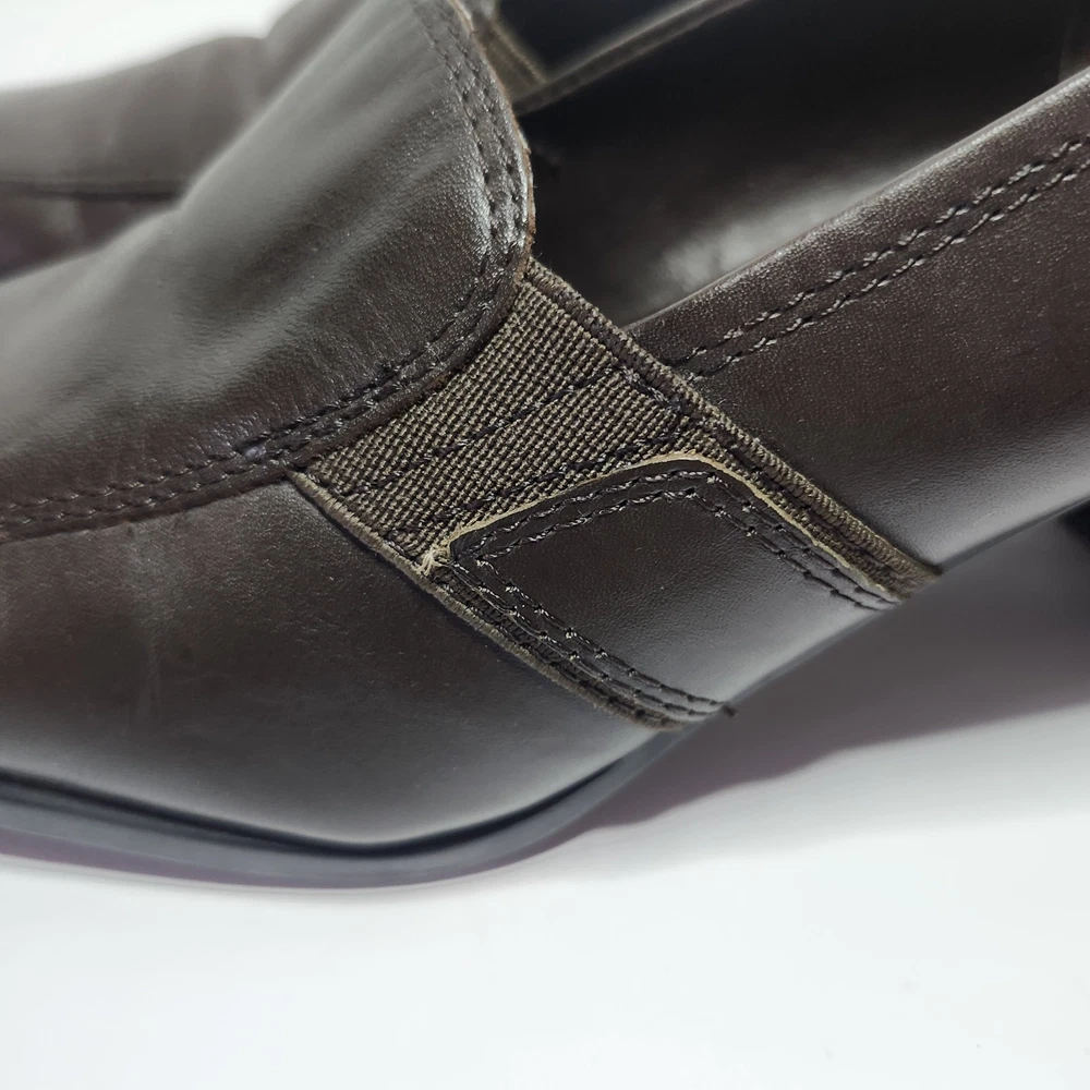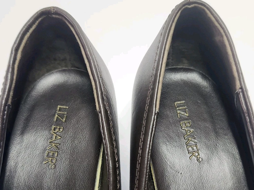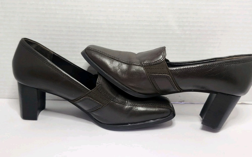 The Liz Baker Brown Leather Shoes are a stylish and comfortable choice for women in US size 6M. These slip-on pumps feature a square toe and block heels, perfect for various occasions like travel, parties, casual outings, or business meetings. The leather upper and lining, along with cushioned insole and rubber outsole, provide comfort and stability. The brown color and embroidered accents add a touch of elegance to these versatile heels, making them suitable for all seasons.