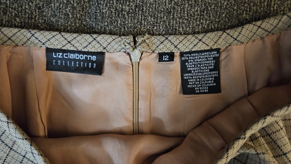 The Liz Claiborne Collection Plaid Skirt in tan/brown, size 12 is a stylish and versatile addition to any woman's wardrobe. Made by the reputable Liz Claiborne brand, this skirt features a classic plaid pattern in a warm and earthy brown color. Perfect for pairing with a variety of tops and shoes, this skirt is sure to become a go-to piece for any occasion.