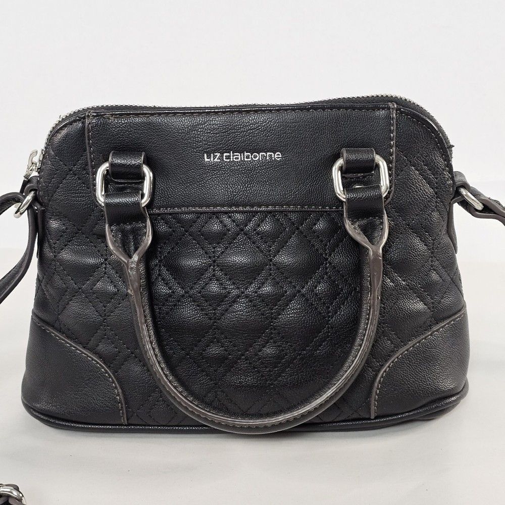 Liz Claiborne Shoulder Bag Textured Black Leather 10" × 4" Good Condition. Please Check All Pictures Closely For A More Detailed Visual Description Of Measurements And Condition. Ships Out Free Within One Business Day.