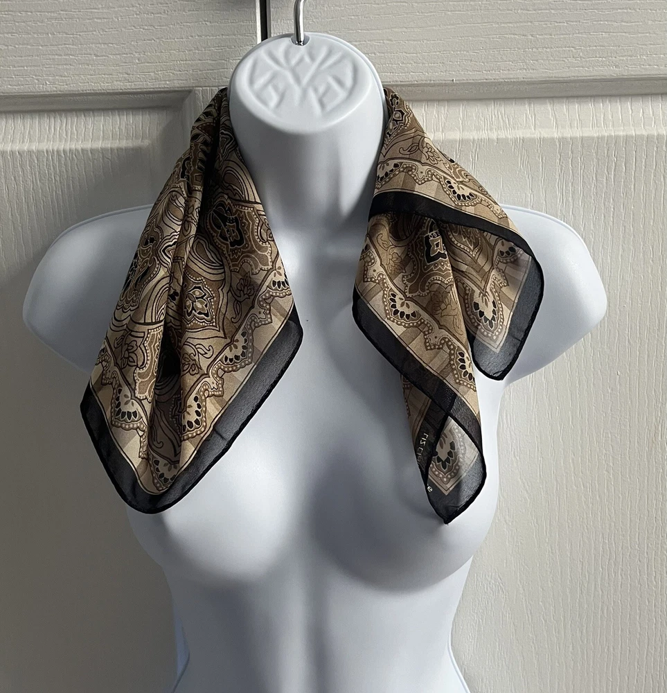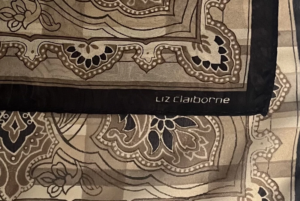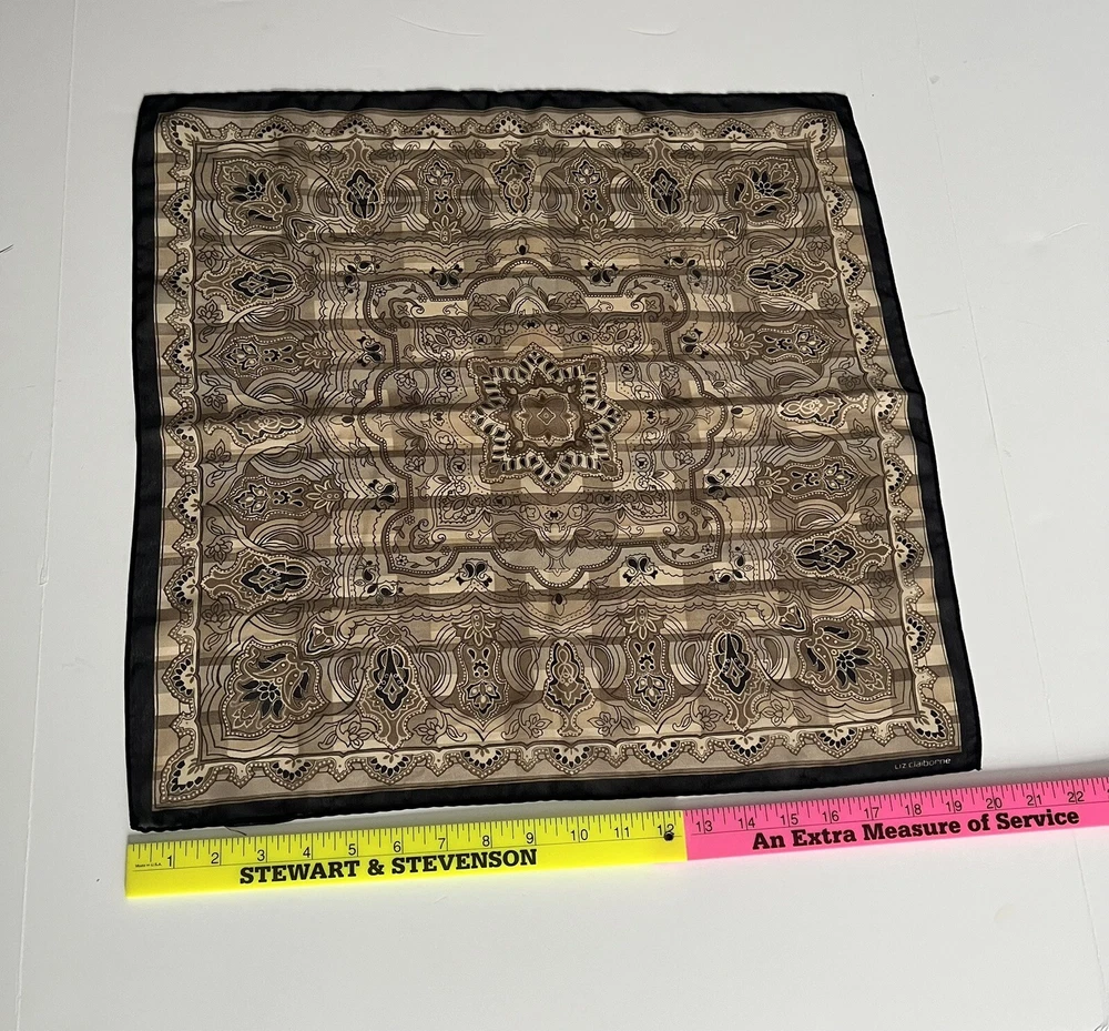 The Liz Claiborne Vintage Brown And Black Scarf is a stylish accessory for women. Made from a luxurious silk blend material, this scarf comes in a beautiful brown color with black accents, adding a touch of sophistication to any outfit. Its multifunctional design allows for versatile styling options, making it a versatile addition to any wardrobe. Perfect for adding a chic touch to any outfit, this Liz Claiborne scarf is a timeless piece that can be worn for various occasions.