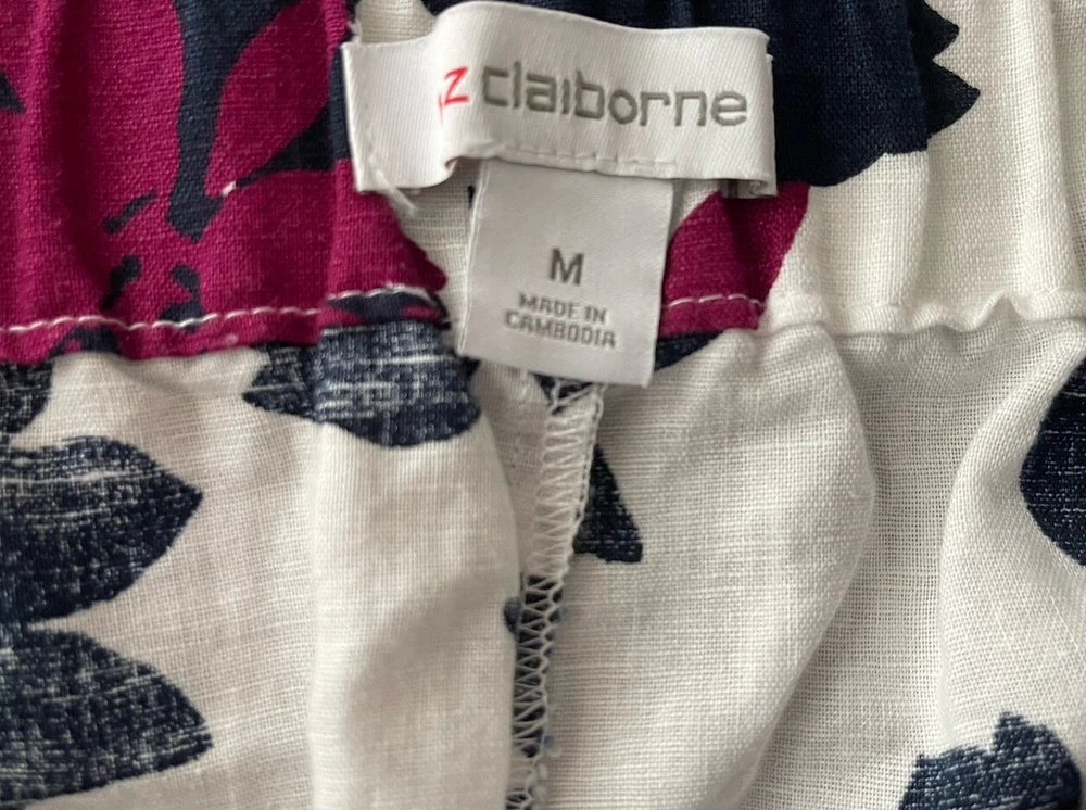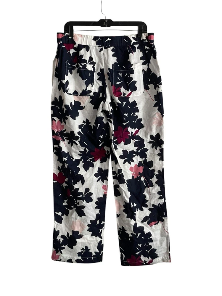 Liz Claiborne Women Linen Blend Pants Med Navy White floral Vacation Beach NWT. Condition is New with tags. Shipped with USPS First Class.