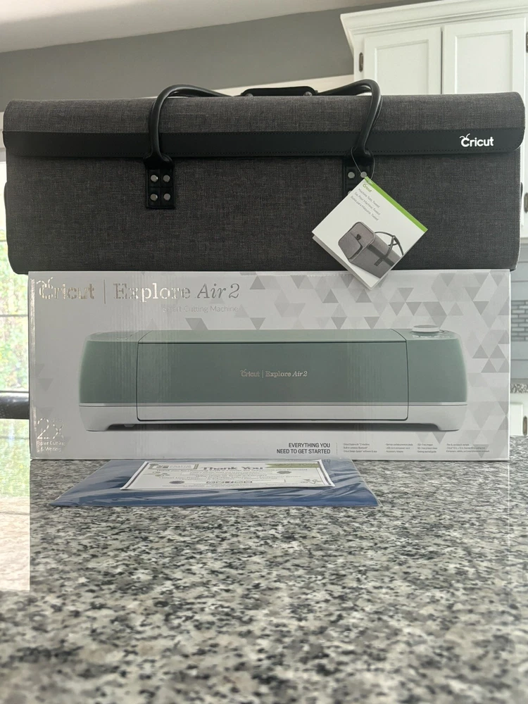 BRAND NEW With CASE Introducing the Cricut Explore Air 2 Die Cutting Machine, a must-have for all crafting enthusiasts! This amazing machine is perfect for cutting out intricate designs from paper and cardstock. With its wireless feature, you can easily cut out designs without worrying about any cords or outlets. The machine comes with a tweed tote, making it easy to transport and store. Its brand, Cricut, is synonymous with quality and creativity. This die cutting machine is ideal for scrapbooking, card making, and other paper crafts. Get ready to unleash your creativity with the Cricut Explore Air 2 Die Cutting Machine!