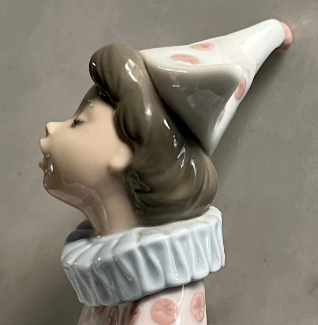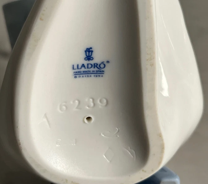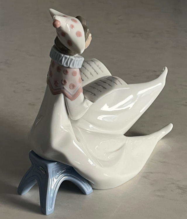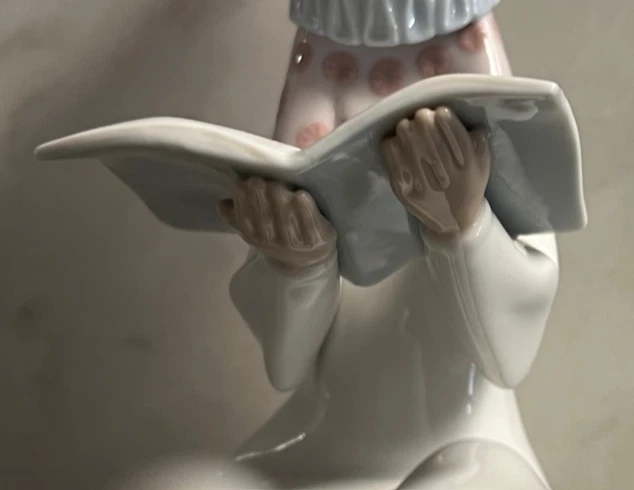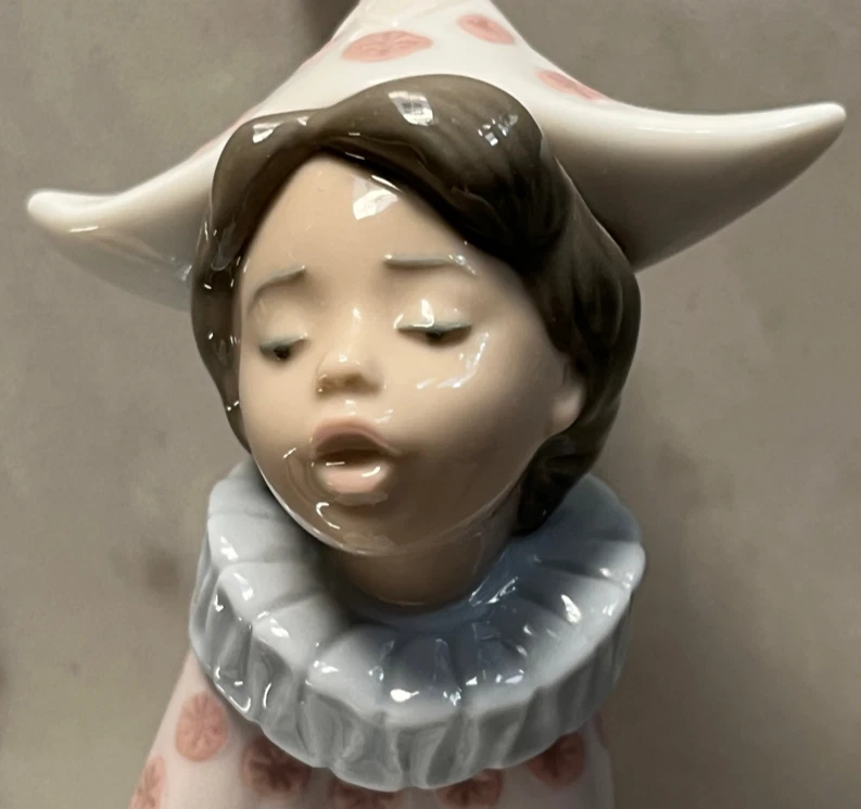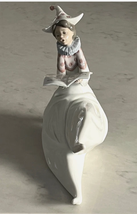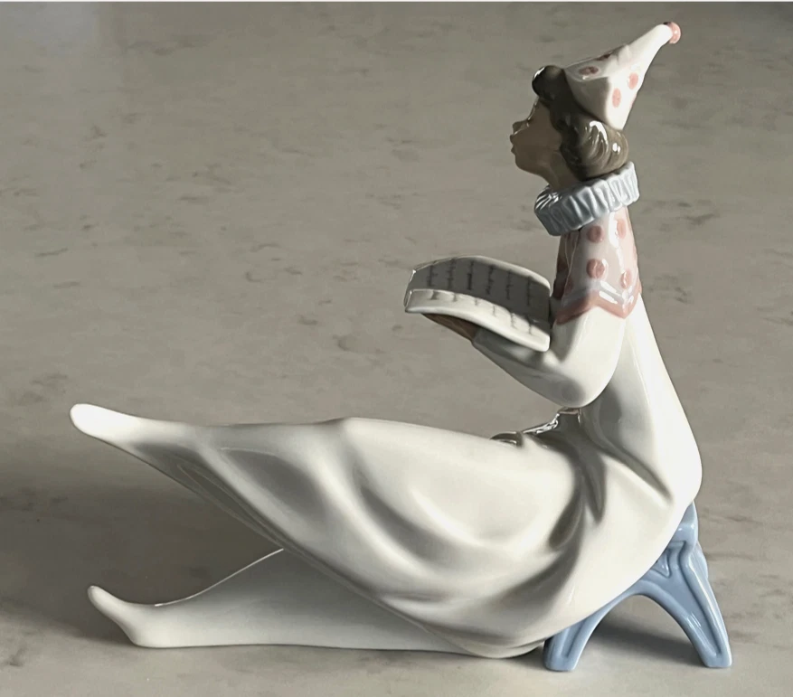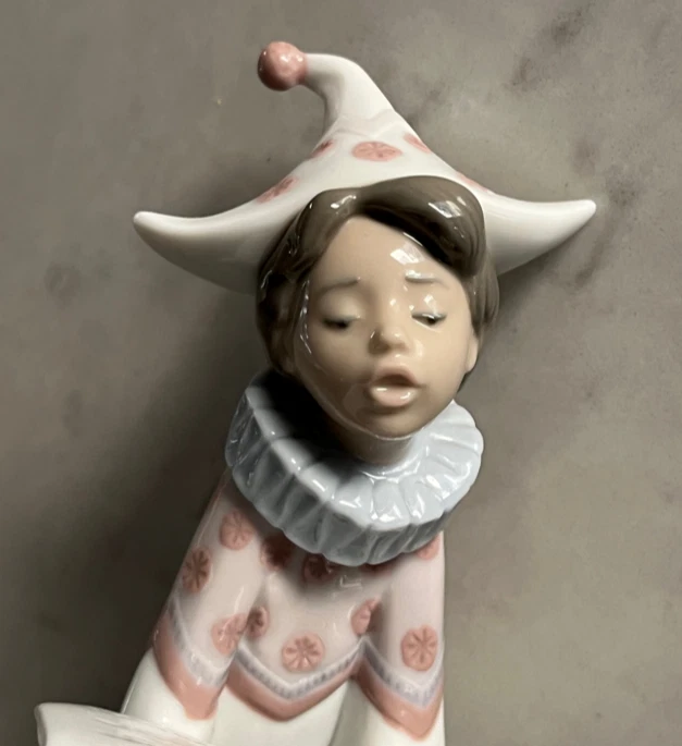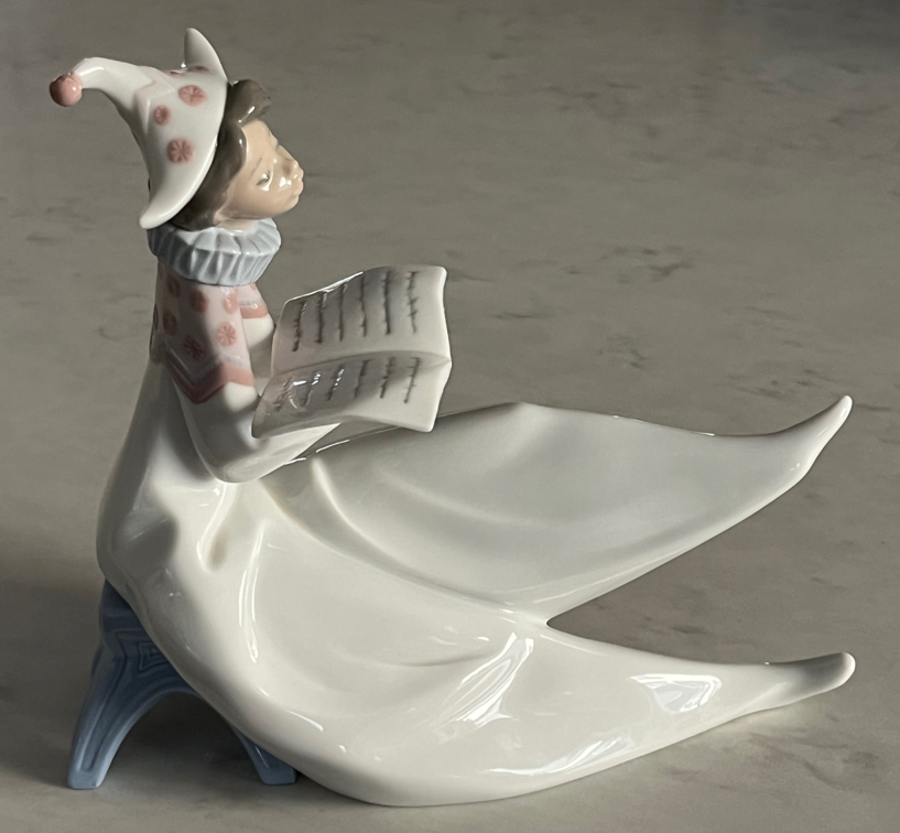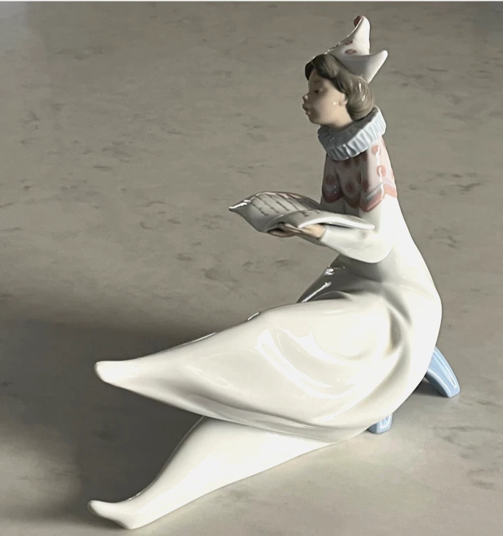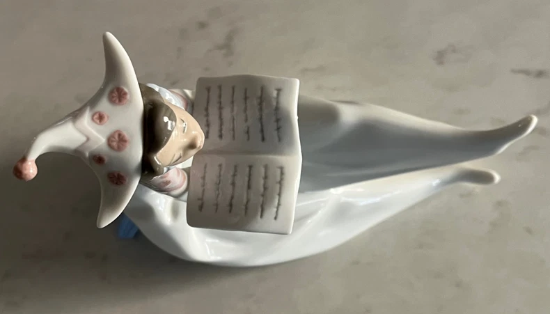 This Lladro 6239 is called "Young Jester Singer" from the Harlequins and Columbinas Collection . (last photo is a stock photo - all other photos are of the piece for sale) It depicts a young Jester/Harlequin/Clown holding music and singing. Very beautiful and colorful! * This is 1 of 3 in the Young Jester Set : 6237 "Young Jester with Mandolin"; 6238 "Young Jester Trumpet" & 6239 "Young Jester Singer" Spanish Name : Payasito Cantor (Clown singer) Issued in 1994 and retired in 1998 Designed and sculpted by Joan Coderch Measures : 8"T x 8 1/2"L x 4 1/2"W Manufactured in Valencia, Spain RV (Retail Value) : $265 Full blue Lladro stamp & blue flower logo backstamp UPC : 7-37859-06239-1 Beautiful piece in MINT condition : no chips , cracks or repairs NO original box, will pack with care Wonderful as a gift or for your own collection! This is a large piece that requires extra insurance fees, thus the higher shipping BUT..... .....will combine/reduce shipping charges (if listed) on multiple purchases. *FAST SHIPPING! **Will accept returns if it's a sizing issue or just don't like the item: full refund on the item alone - buyer pays return shipping . (items marked for identification purposes) ***Your item may be shipped either by UPS, FedEx or USPS depending on the lower shipping cost. Handling time is 3 Business days and you will be sent the tracking number when your item ships.