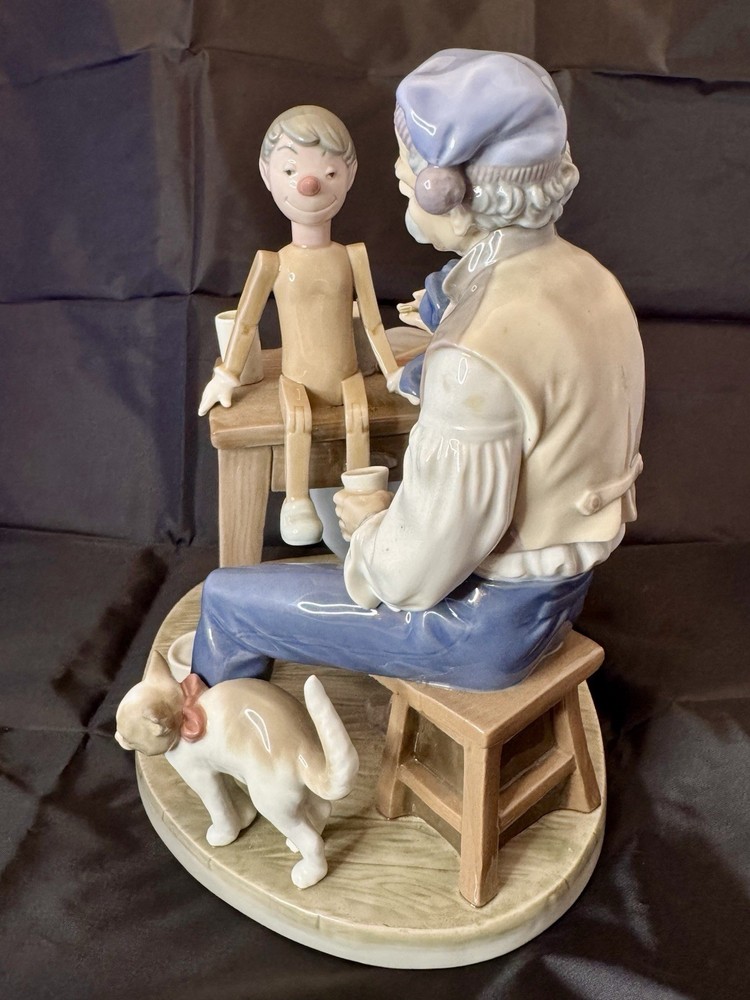 Lladro figure of “Toy Maker” (Geppetto and Pinocchio) in good condition. Made in Spain, stamped logo on the bottom with engraved production number. Does not come in original box, does not come with paintbrush, hence discounted price. Compare pricing to $395 online (recently sold w/o box). Message me for any questions you may have.