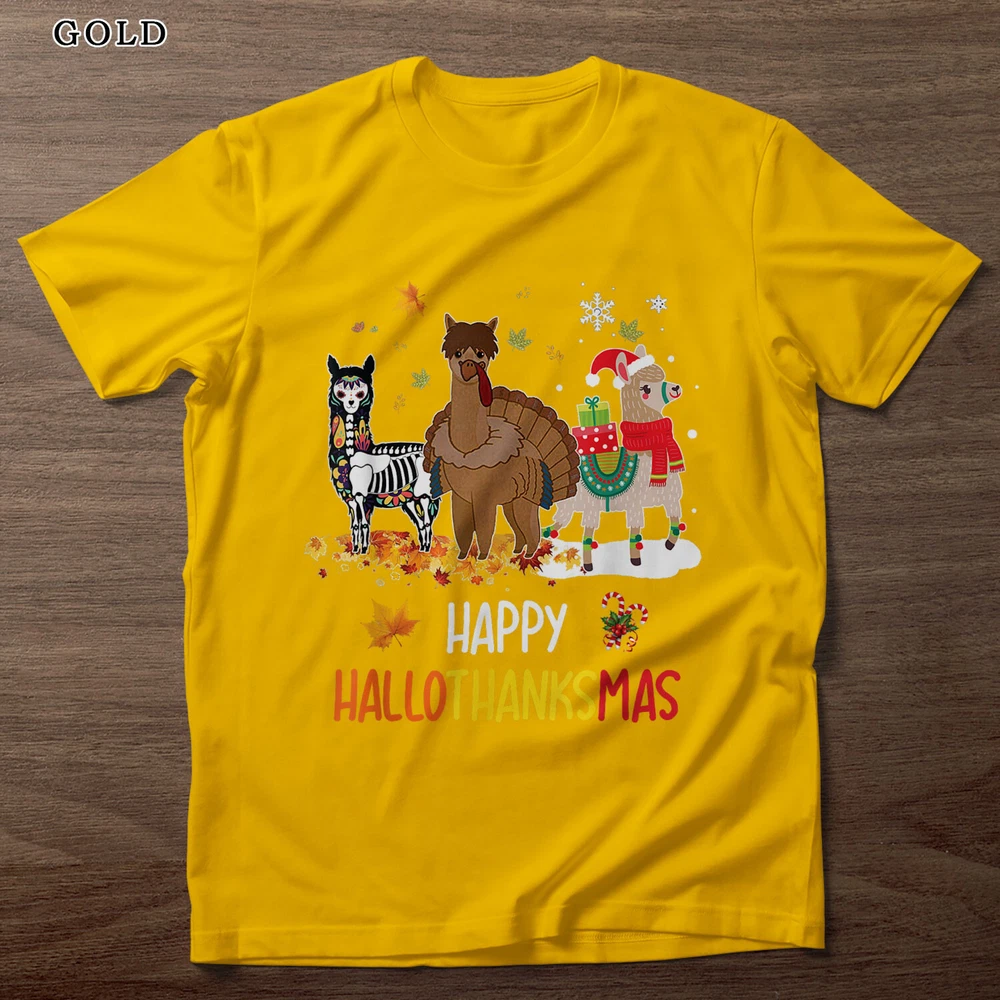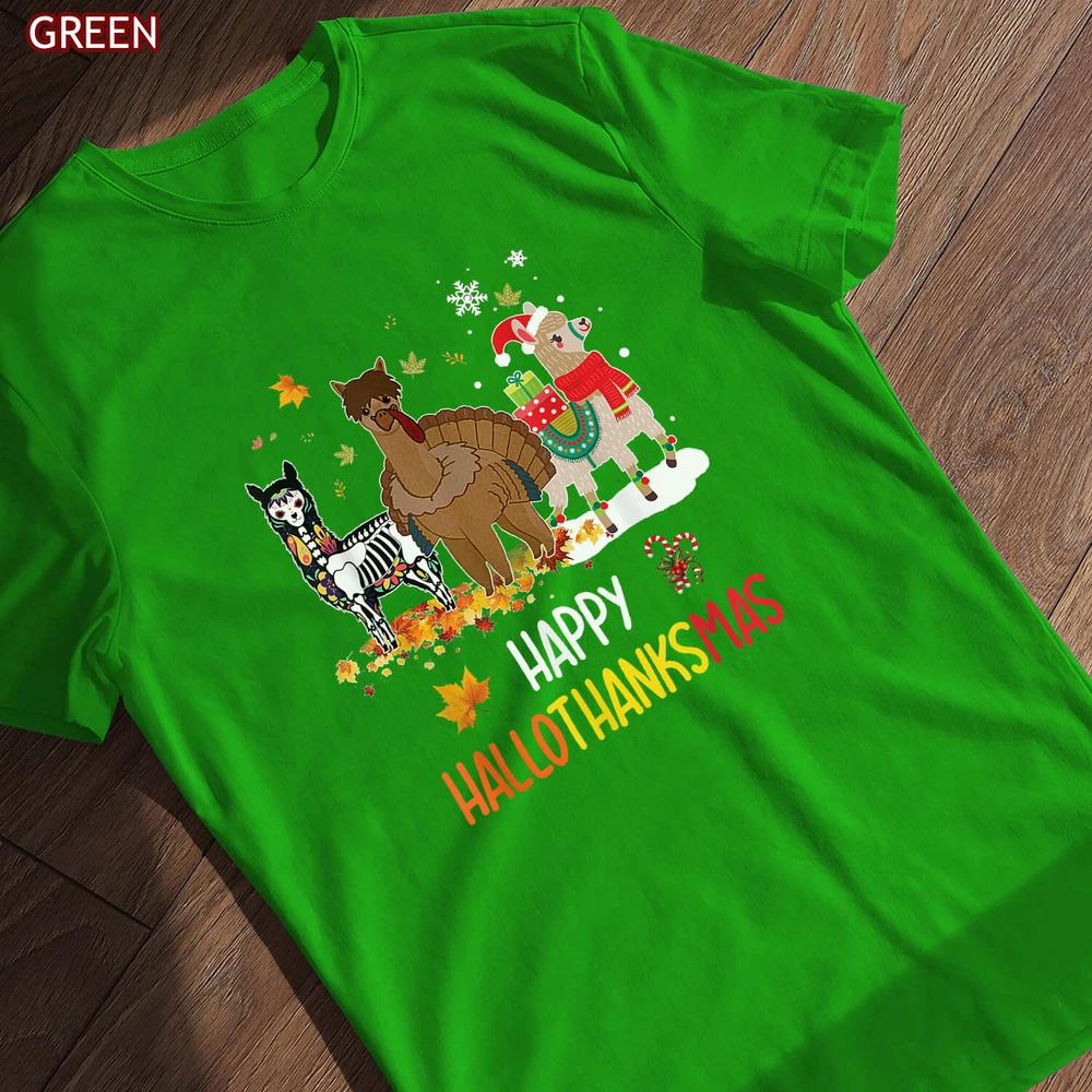 Llama Happy Hallothanksmas Tee Gift, Thanksgiving Halloween Christmas Shirt