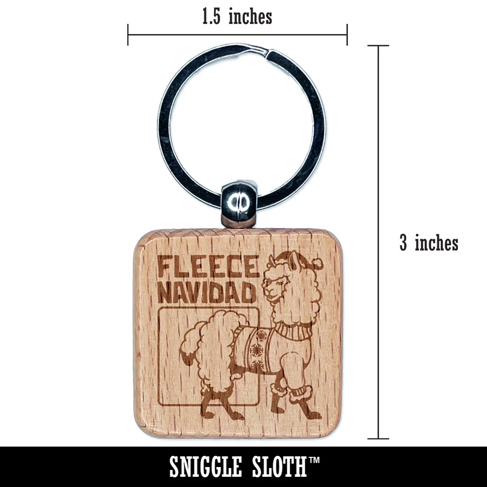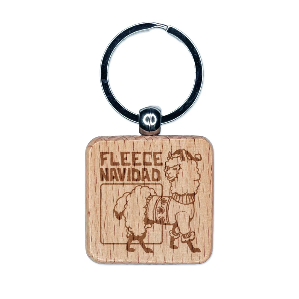 Llavero cuadrado de lana Navidad alpaca grabada madera cuadrada etiqueta dije