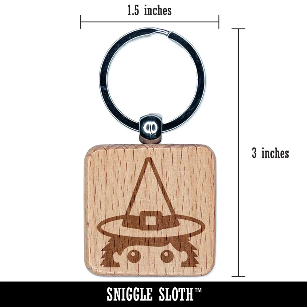 Llavero cuadrado de madera grabada de Halloween Peeking Witch dije etiqueta