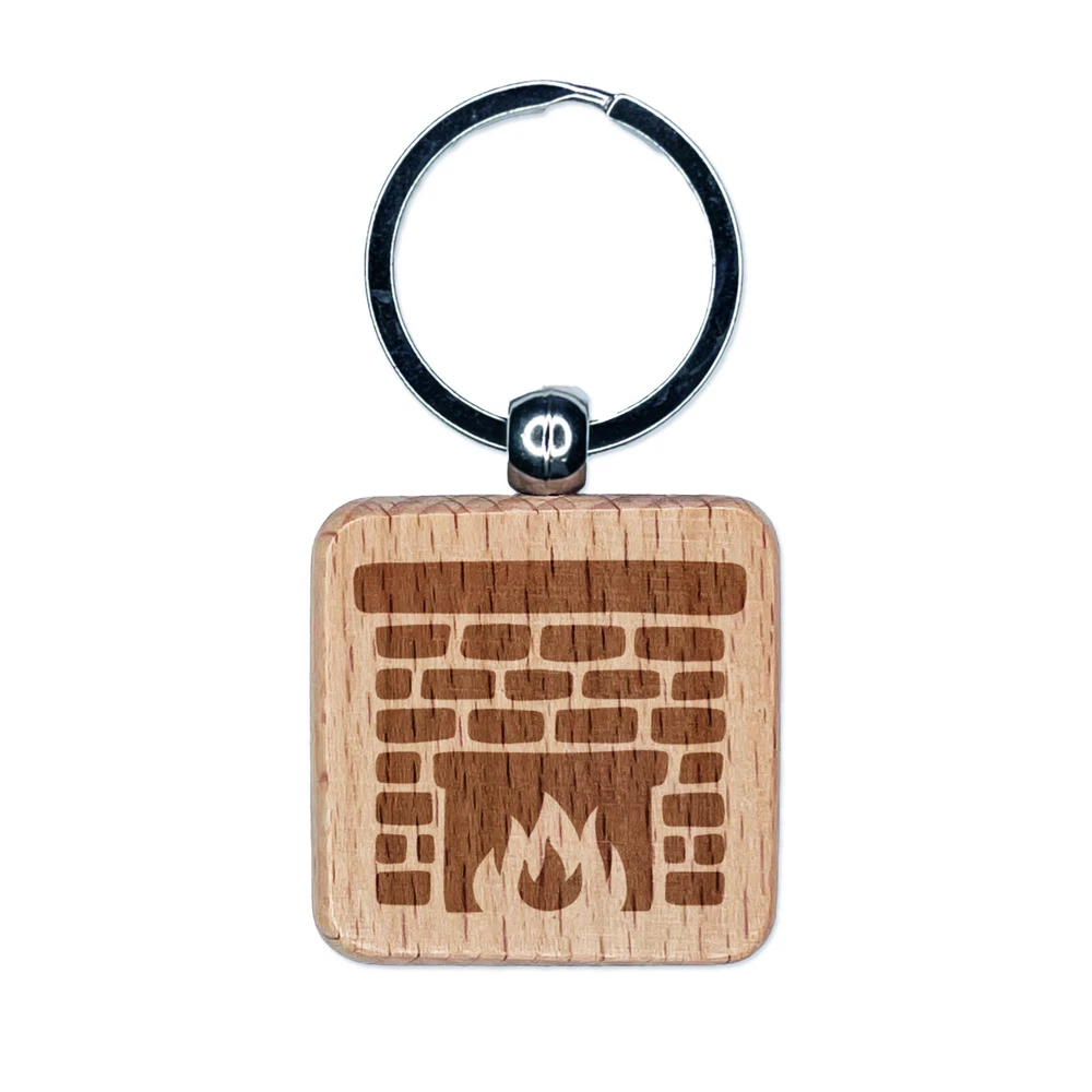 Llavero cuadrado de madera grabada de ladrillo chimenea dije etiqueta