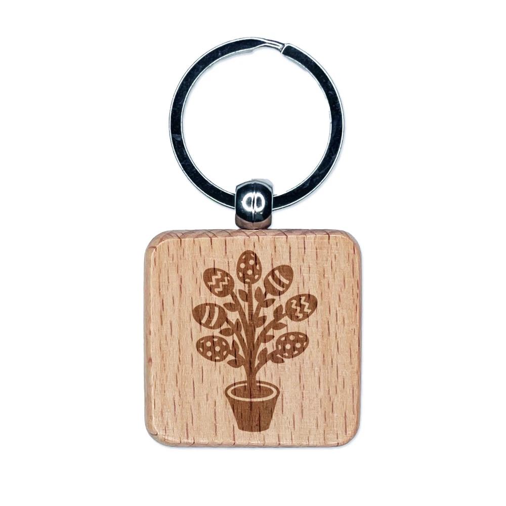 Llavero cuadrado grabado en madera con etiqueta de huevo de Pascua