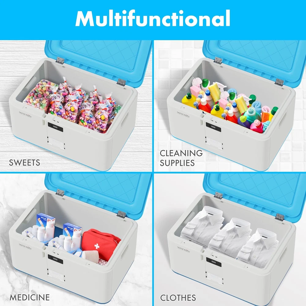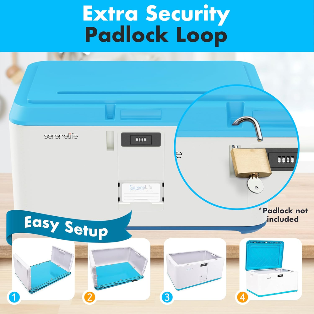 Store New Arrivals Add to Favorite View Feedback Contact Lockable Storage Box, 21 Gallon Capacity Storage Trunk with Combination Lock, Locking Container Bin for Organization Description Item model number SLSBIN21LB Storage Volume 79.49 Liters Style Contemporary Capacity 21 Gallons Number of Items 1 Closure Type Flip Top Pattern Solid Country of Origin China Unit Count 1.0 Count Number of Compartments 1 Batteries required No Material Acrylonitrile Butadiene Styrene Maximum Weight Recommendation 100 Pounds Item Package Quantity 1 Water Resistance Level Not Water Resistant Item Weight 12.67 pounds Opening Mechanism Hinge Special Feature Durable Color Light Blue Shape Rectangular Recommended Uses For Product Toy storage, For storage, Shoe storage, Tools Product Dimensions 23.63"L x 16.54"W x 12.2"H Number of pieces 1 21 GALLON CAPACITY: Supporting up to 66 lbs weight & a maximum capacity of 21 gallons, this locking storage box is spacious enough for you to stash various items. The mini storage trunk with lock has full dimensions of 12.25" x 16.5" x 23.5" inches 4 DIGIT LOCK COMBINATION: No need to worry about losing any key as this lockable box utilizes a 4 digit integrated combination lock for security that supports user defined number passcode setting. Can be used for item storage or food lock box DURABLE & HEAVY DUTY: This 5-gallon locking trunk has an impact-resistant, scratch-resistant, & stain-resistant housing. Unlike most lockable storage containers, this storage with lock is made to last for home/office use, parties, or the beach EASY ACCESS LIFT-TOP HINGES: Made with your convenience in mind, this storage box with lock is designed with easy access lift-top hinges for a smoother feel during use. They can also be stackable allowing them to a convenient storage box solution IDEAL FOR HOME, OFFICE, CAMPING: Whether you want to organize items at home / office, or need storage for your beach vacation / camping, this lockable storage box will be able to accommodate your needs with its safe, rugged, and reliable construction Features: - Convenient Storage Box Solution - Integrated Combination Lock for Security - User-Defined Number Passcode Setting - Safe, Rugged, Reliable Construction - Heavy-Duty Impact Resistance - Anti-Scratch & Stain-Resistant Housing - Easy Access Lift-Top Hinges - Clean & Streamline Modern Style - Side Panel Carry Handle Grips - Perfect for Home, Office, School, Business & Mobile Use What's in the Box: - Locking Storage Container Bin Technical Specs: - Internal Storage Capacity: 21 Gallon/78 Liter - Maximum Support Weight: 100+ lbs. - Construction Material: Reinforced Engineered ABS - Pass Code Type: Manual 4-Digit, Numerical - Dimensions: 12.21'' x 16.54'' x 23.63'' -inches - Internal Dimensions: 9.85'' x 16.15'' x 23.6'' -inches ABOUT US We offer the best prices around on high quality products. Our E-store includes media such as books, movies, music and games while offering electronics, toys, sporting apparel, clothing, tools, general home, garden items and more. SHIPPING We are always working hard to ensure your package arrives as soon as possible. Please understand that some factors like weather, high postal traffic, and the performance of shipping companies are outside of our control. We offer free shipping to the lower 48 states and ship within 2 business days of payment, usually sooner. We do not accept P.O. Boxes. Please provide a physical address. For shipping outside of the continental USA, we only use eBay's Global Shipping Program.The item is shipped to KY and then sent to the rest of the world. International customers are responsible for all duties and taxes. Continue to check out in order to calculate costs for shipping the item to your country. Messages regarding eBay's Global Shipping Program MUST be directed at eBay EXCLUSIVELY. RETURNS We offer a 30-Day Return Policy on items which you are not completely satisfied with. You have the option for a full-refund or an exchange of the item. No returns are available on items shipped outside of the USA. PAYMENT We accept PayPal. CONTACT US This page content is yet to come Please ad us to your favorite seller and visit again later Thank You CUSTOMER SATISFACTION We try our very best to make sure every customer is completely satisfied. If there's a problem, message us! We're happy to help. WE ACCEPT Copyright © 2021 AutoDS. | All Rights Reserved