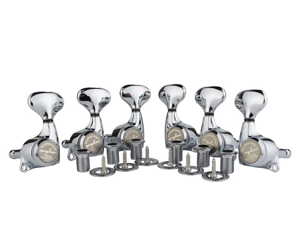 100% Money Back Guarantee if you are not satisfied with your purchase! _______________________ Description: Guitar Locking Tuners (3L + 3R) - 1:21 Lock String Tuning Key Pegs Machine Head Set Replacement for ST TL SG LP Style Electric, Folk or Acoustic Guitars – Chrome Package includes: 6 pieces (3 for Right, 3 for Left Handed) lock guitar tuners pegs, mounting hardware (screws, bushings and washers) included, good replacement for Strat Tele style electric or acoustic guitars. Guitar tuning machines with heavy duty internal gear, sturdy and convenient. Easy to install, easy to replace your old or dirty guitar tuning pegs. Guyker locking tuners help to provide finer tuning and greater stability. Comfortable and easy for adjustment of string tension. Gear Ratio - 1:21, designed to fit modern 10mm headstock holes. Semicircle shaped button with sealed housing and 45 degree fixing tag. Note: We have upgraded the product logo, and the product quality remains unchanged. The new and old icons will be shipped randomly. Please check the parameter drawing in the attached pics before placing your order. _____________________________ 100% Money Back Guarantee: We offer 30 Day Money Back Guarantee from the day you purchased if you’re not satisfied with your product. If you have any questions about our products, please contact us as soon as possible. Customer satisfaction is our absolute priority. Shipping: We are always working hard to ensure your package arrives as soon as possible. Please understand that some factors like weather, high postal traffic, and the performance of shipping companies are outside of our control. We offer free shipping to the lower 48 states and ship within 3 business days of payment, usually sooner. We do not accept P.O. Boxes. Please provide a physical address. You will be notified via eBay messages as soon as your items ship. Delivery? We will ship out the item in 2-3 working day after receiving the payment. Usually the delivery takes 2-5 business days. If you don't receive the items after 10 days, please feel free to contact us. You'll get a replacement or a full refund. Please DO NOT open a return request or leave negative feedback without asking for help. Returns: We offer a 30-Day Return Policy on defective/wrong items or items which you are not completely satisfied with. You have the option for a full-refund or an exchange of the item. Returned items must be in all of the original packaging and include all of the original accessories or items that came with it. The item and package should be in original condition. Contact Us: Any queries or issues incurred, please feel free to contact us via eBay message, we will get back to you within 24 hours. Please DO NOT open a return request or leave negative feedback without asking for help. Feedback: Your feedback is very important to us. After you get your package and you are satisfied with our service, please leave us positive feedback. We're highly appreciated for your POSITIVE feedback & 5 stars. Enjoy shopping.