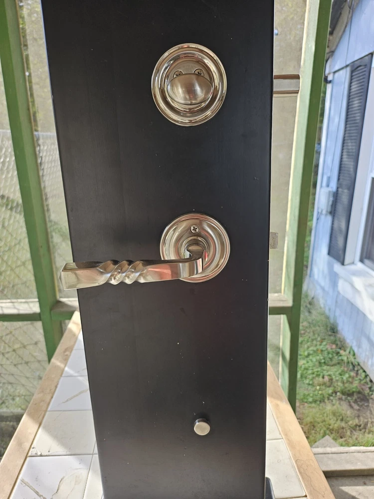 Enhance the look of your residential front entrance door with this beautiful Bravura Entrance Lockset Designs from Great European Homes Display Model. Crafted from high-quality brass material, this contemporary style door handle is suitable for right-hand/inswing door handing and comes with hardware and key. The glossy finish and silver color add to its elegance, making it a perfect addition to any modern home. This easy-to-install door handle / lever set is designed for residential use and features keyed entry for added security. Made in the United States, this unit comes as a single pack and is perfect for those looking to upgrade their front entrance door. Add this Bravura Entrance Lockset to your cart today and give your home a stylish and functional upgrade. THIS IS A FULLY FUNCTIONAL DISPLAY MODEL.