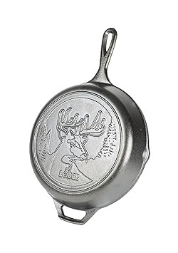 Enjoy the Wild with Lodge's Newest Cast Iron Pans Fun to display and even better in use, this wildlife-themed cast iron skillet features a whitetail buck. Take it into the wild for savory campfire cooking, or enjoy it in the comfort of your own home - over the stove, in the oven or on the grill! Part of Lodge's Wildlife Series™. Cast iron naturally retains heat longer, so your food stays hot longer. Pre-seasoned for a natural non-stick surface. Deer is imprinted on the bottom of skillet. Overall: 10-3/4"OD x 2"D, handle 5"L. Weight: 5-1/4 lb. USA made. Visit Our Store Contact Us Lodge 10.25" Skillet - Deer Design Enjoy the Wild with Lodge's Newest Cast Iron Pans Fun to display and even better in use, this wildlife-themed cast iron skillet features a whitetail buck. Take it into the wild for savory campfire cooking, or enjoy it in the comfort of your own home - over the stove, in the oven or on the grill! Part of Lodge's Wildlife Series™ Cast iron naturally retains heat longer, so your food stays hot longer Pre-seasoned for a natural non-stick surface Deer is imprinted on the bottom of skillet Overall: 10-3/4"OD x 2"D, handle 5"L Weight: 5-1/4 lb USA made
