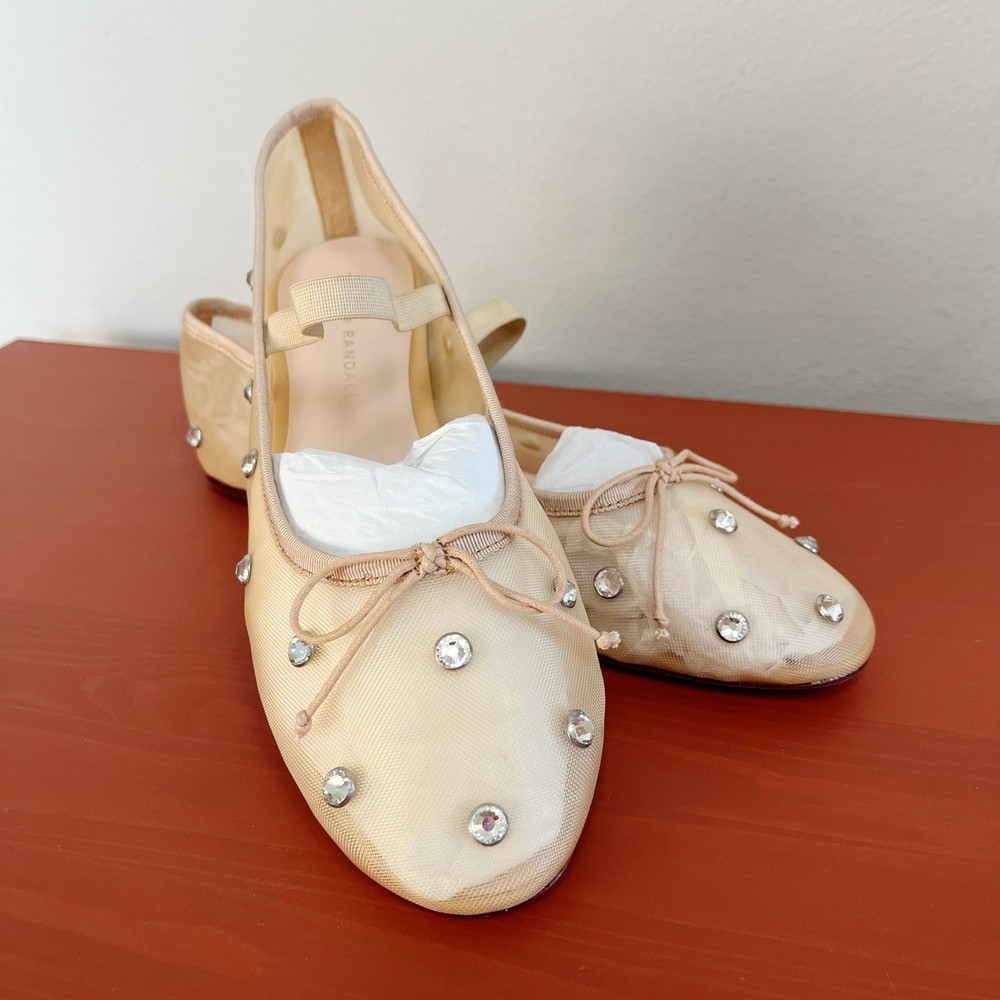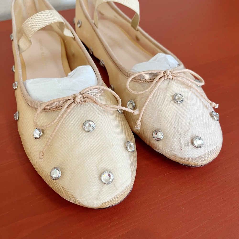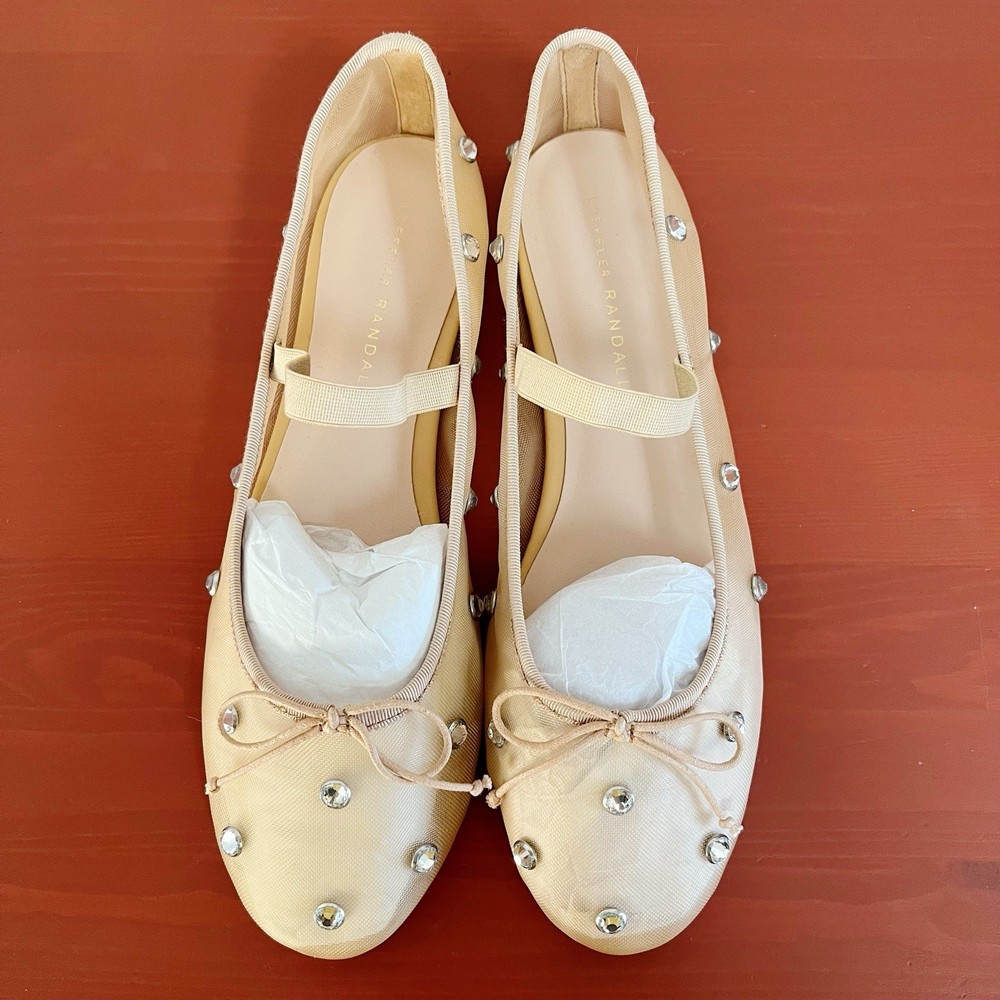 Brand new without box Loeffler Randall Leonie Crystal Mesh Ballet Flats in Caramel/Crystal. Size 9. Slip on with elastic strap. Almond toe. Polyester/leather. Bow tie details. Retail for $295. NWOB. Wedding, bride, party, cocktail, girly, romantic.