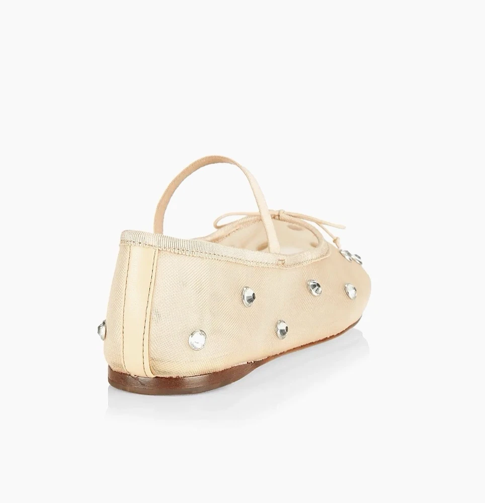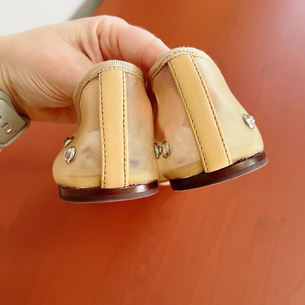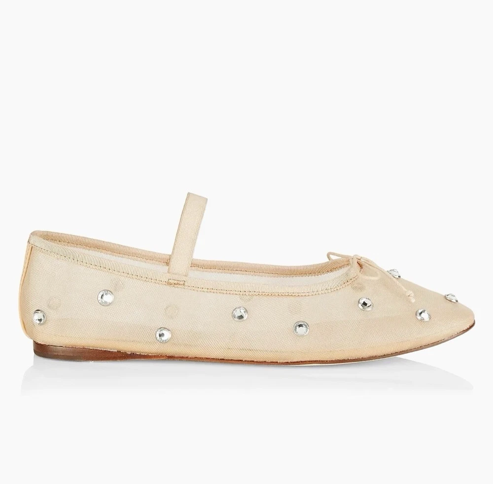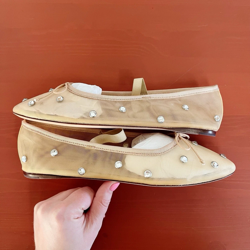 Brand new without box Loeffler Randall Leonie Crystal Mesh Ballet Flats in Caramel/Crystal. Size 9. Slip on with elastic strap. Almond toe. Polyester/leather. Bow tie details. Retail for $295. NWOB. Wedding, bride, party, cocktail, girly, romantic.