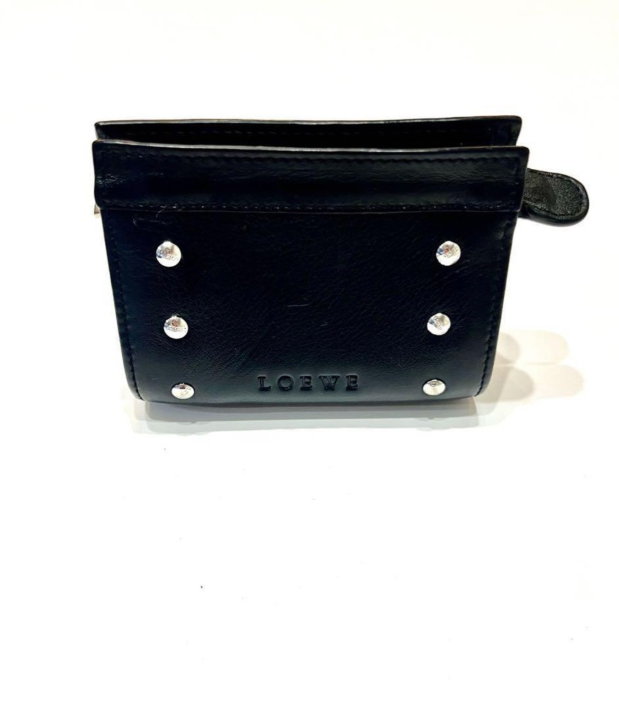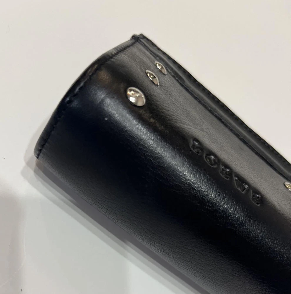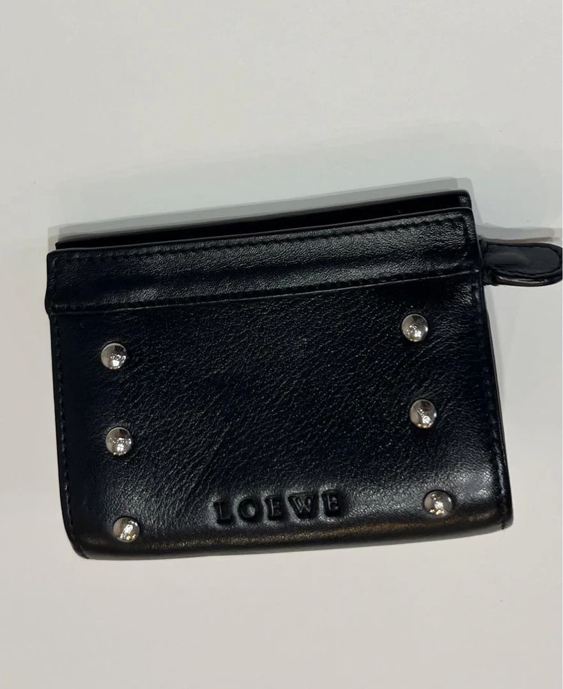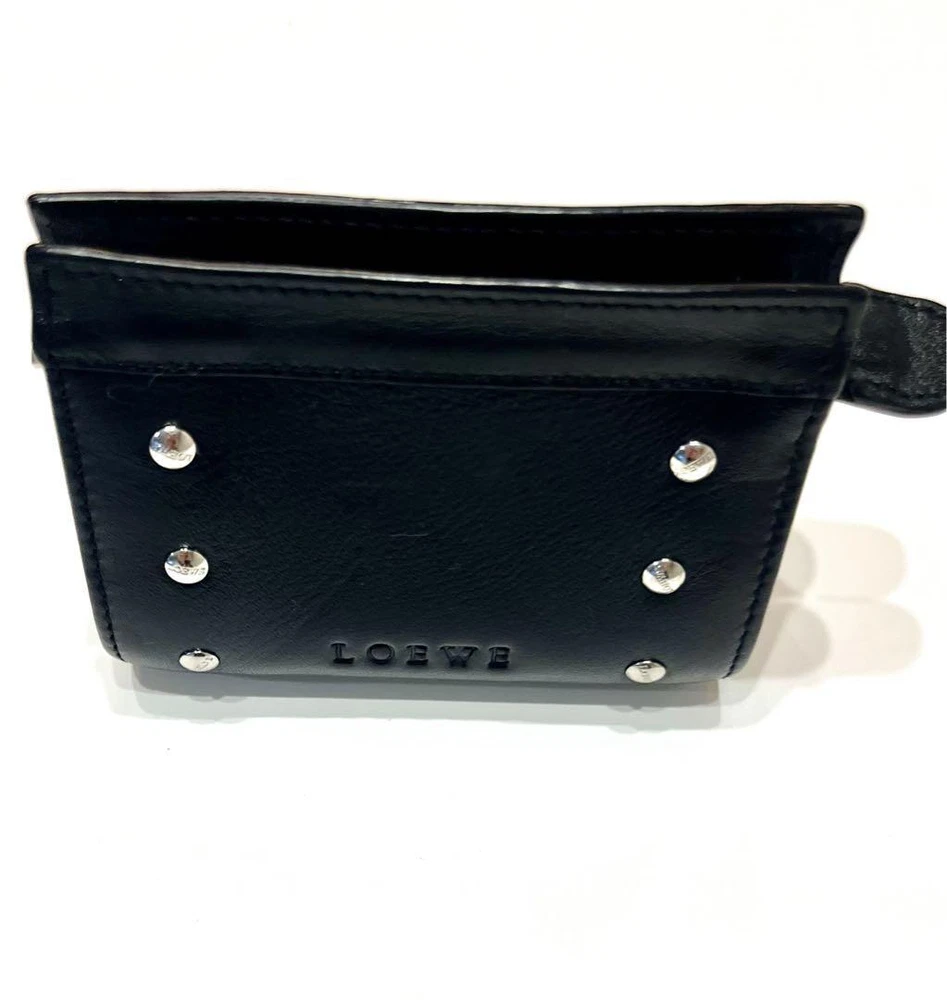 This Loewe studded coin case is a stylish and practical accessory! The black leather looks sleek, and the studded logo adds a chic touch. Despite being pre-owned, it’s in great condition—perfect for keeping cards and coins organized. Love the compact size, easy to toss in any bag. A fantastic find for a fraction of the price!