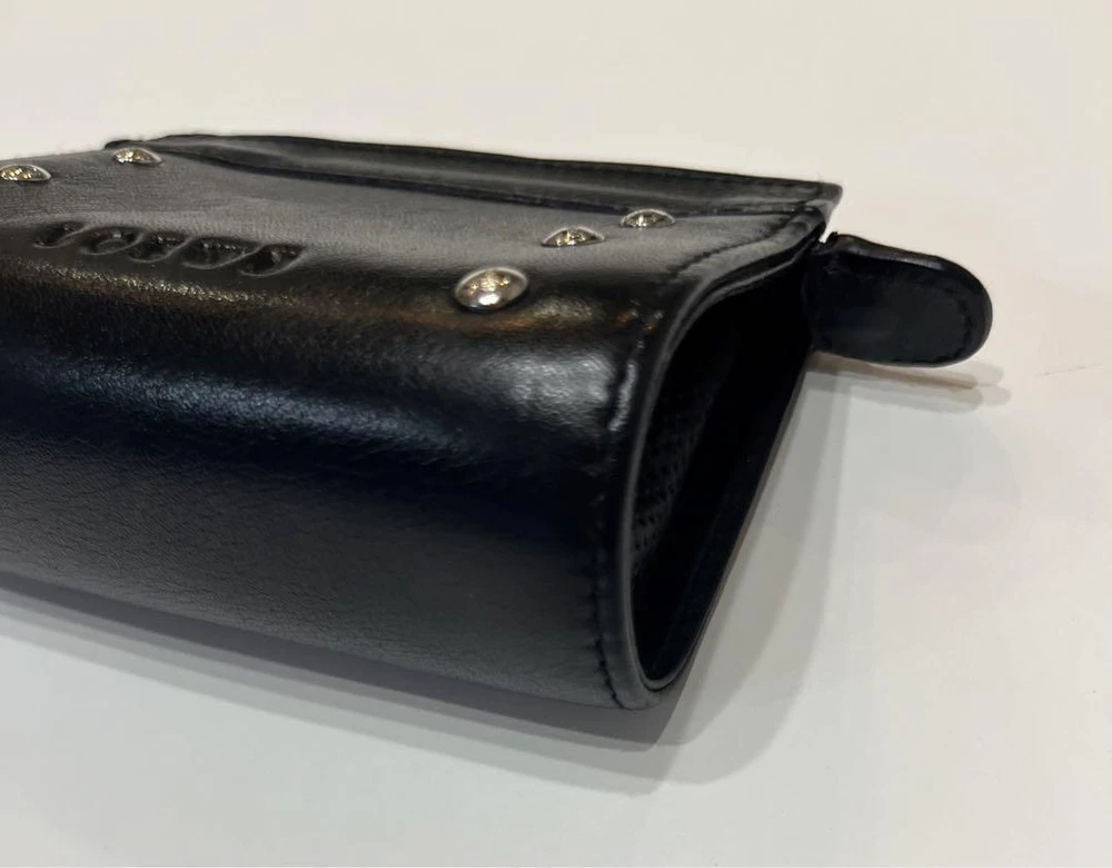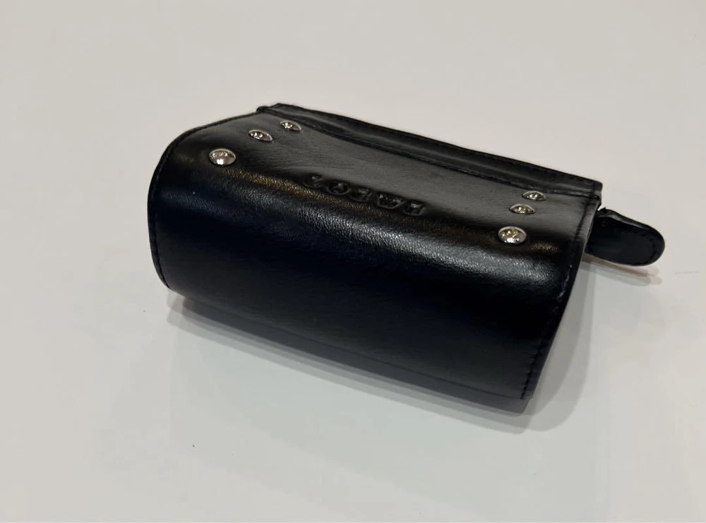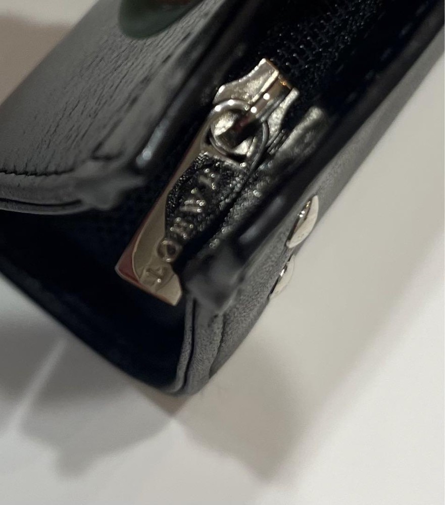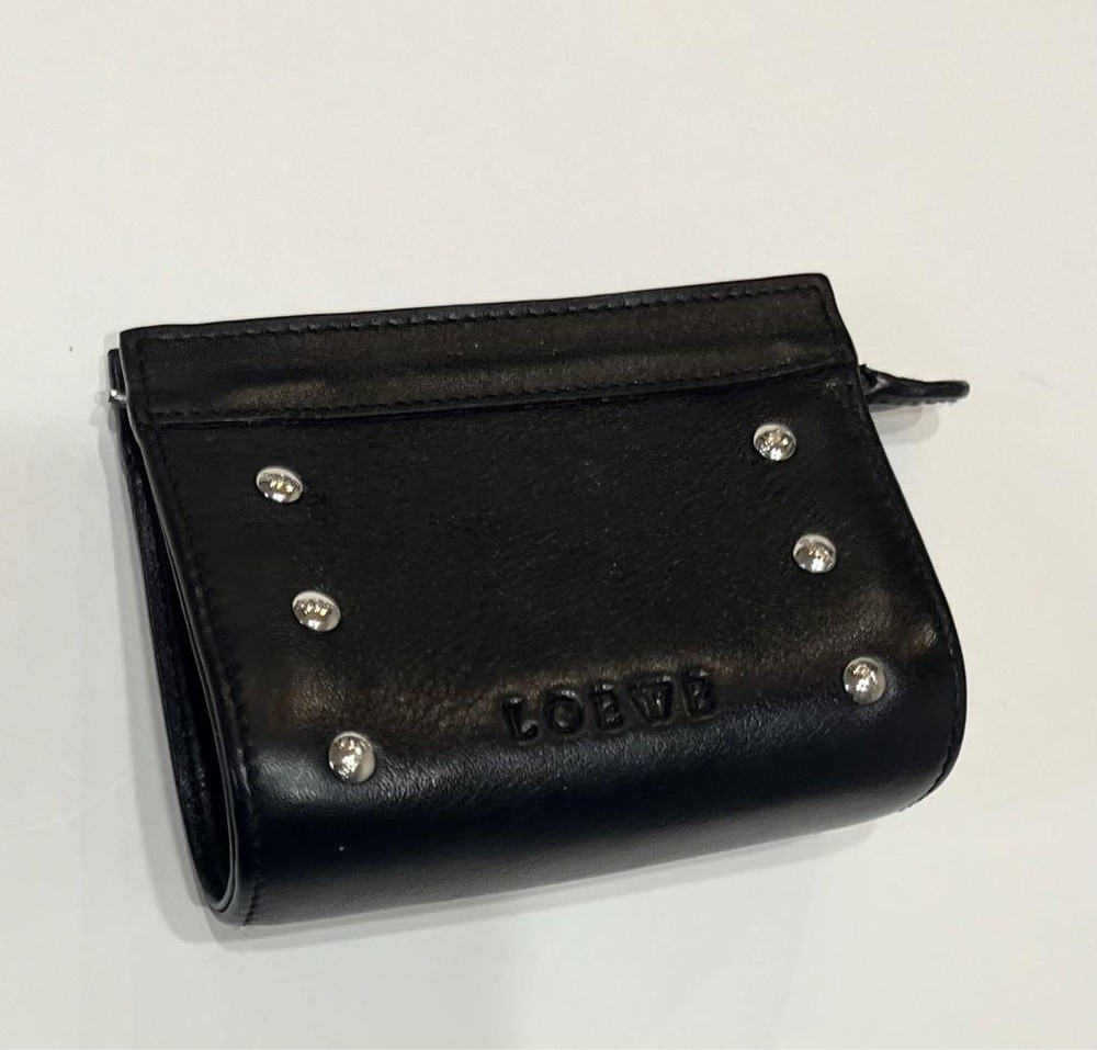 This Loewe studded coin case is a stylish and practical accessory! The black leather looks sleek, and the studded logo adds a chic touch. Despite being pre-owned, it’s in great condition—perfect for keeping cards and coins organized. Love the compact size, easy to toss in any bag. A fantastic find for a fraction of the price!