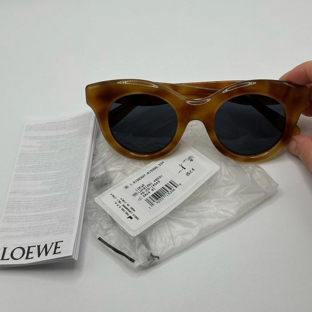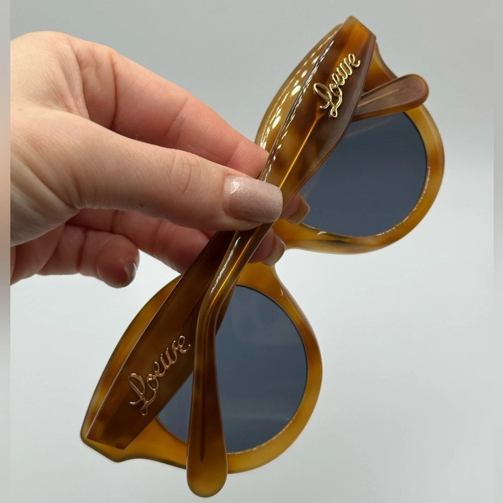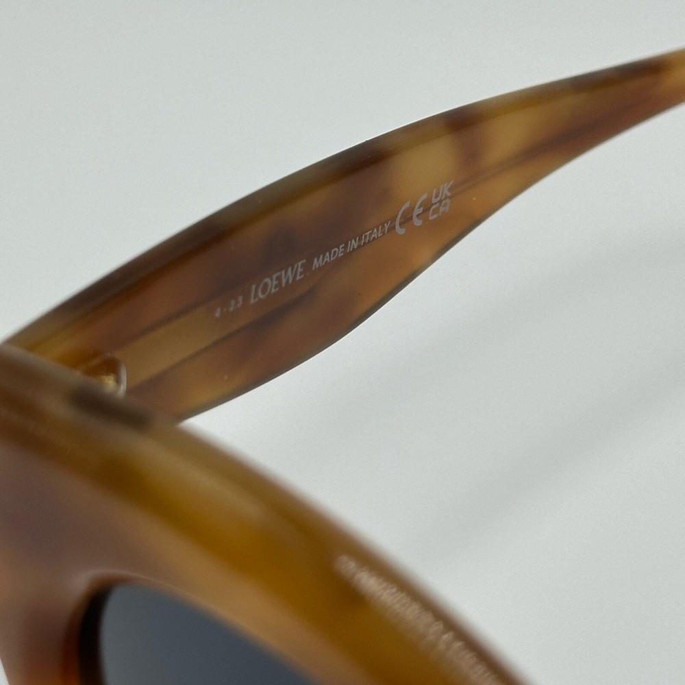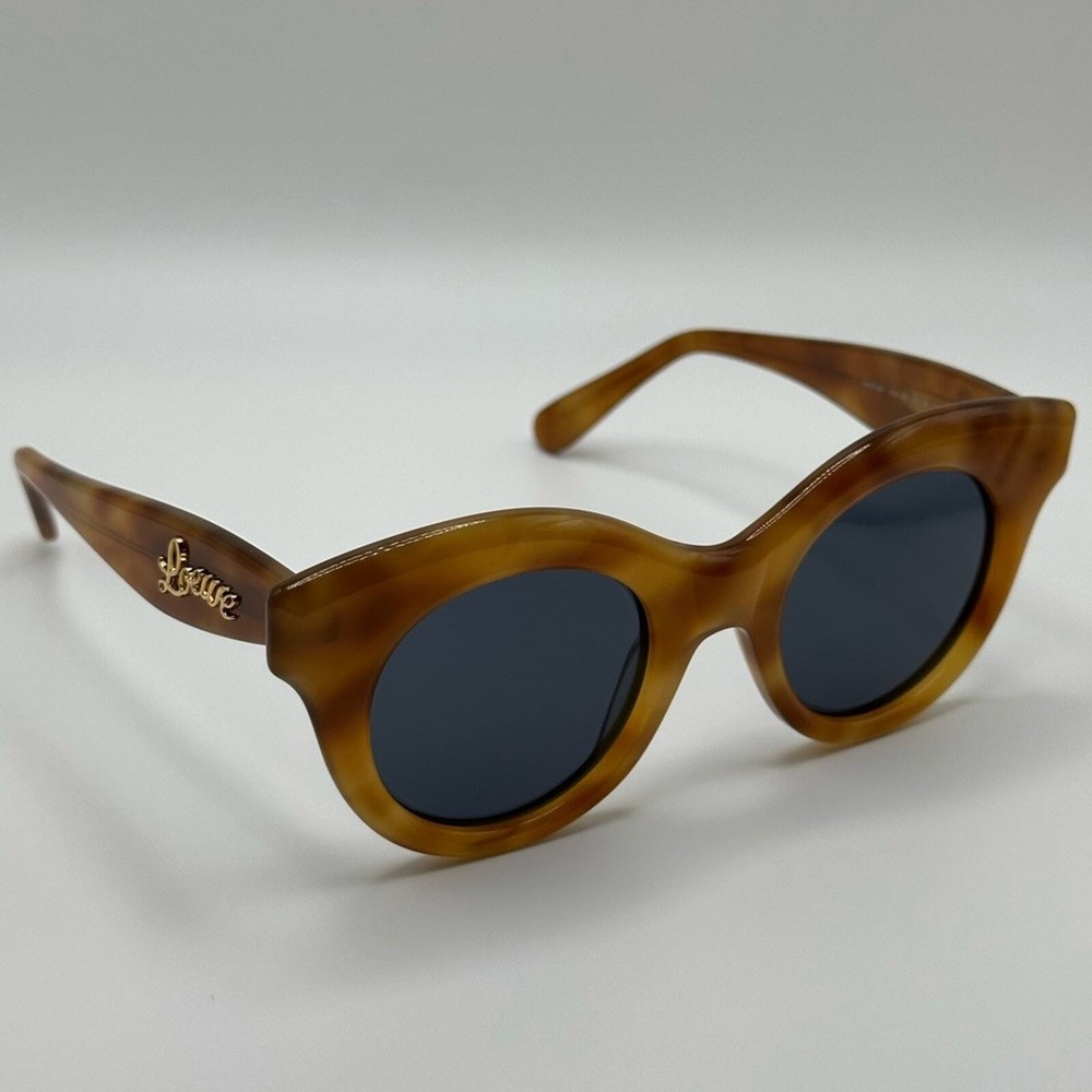 BRAND NEW AND AUTHENTIC LOEWE SUNGLASSES Frame Color: Havana (Tortoise Brown) Lens Color: Dark Blue Frame Shape: Round Cat-Eye Frame Material: Acetate Lens Width: 49 mm Bridge Width: 23 mm Temple (Arm) Length: 145 mm UV Protection: 100% UV protection Country of Manufacture: Italy Comes with original packaging and all accessories SAME DAY SHIPPING