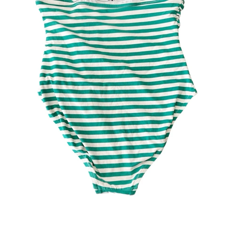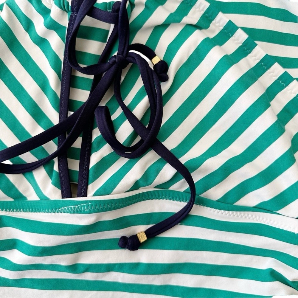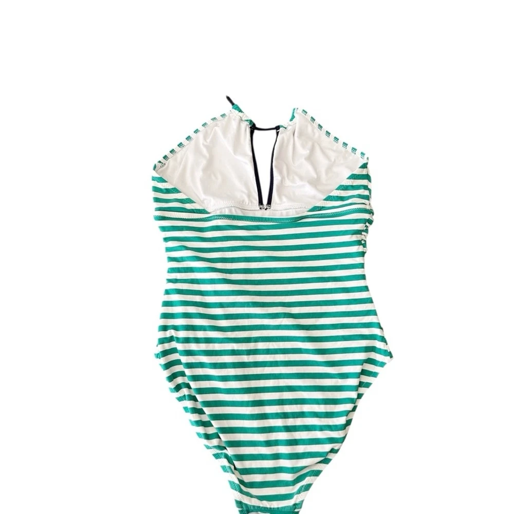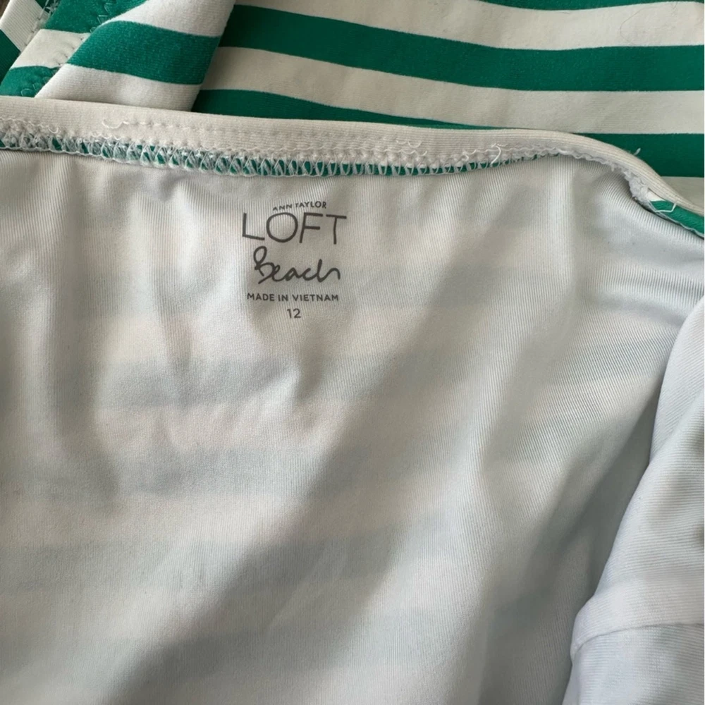 Loft Beach Striped High Neck Halter Slimming One Piece Swimsuit Ties at Neck Halter Style Full Coverage Ruching in front Size: 12 Excellent pre owned condition, no flaws, see photos