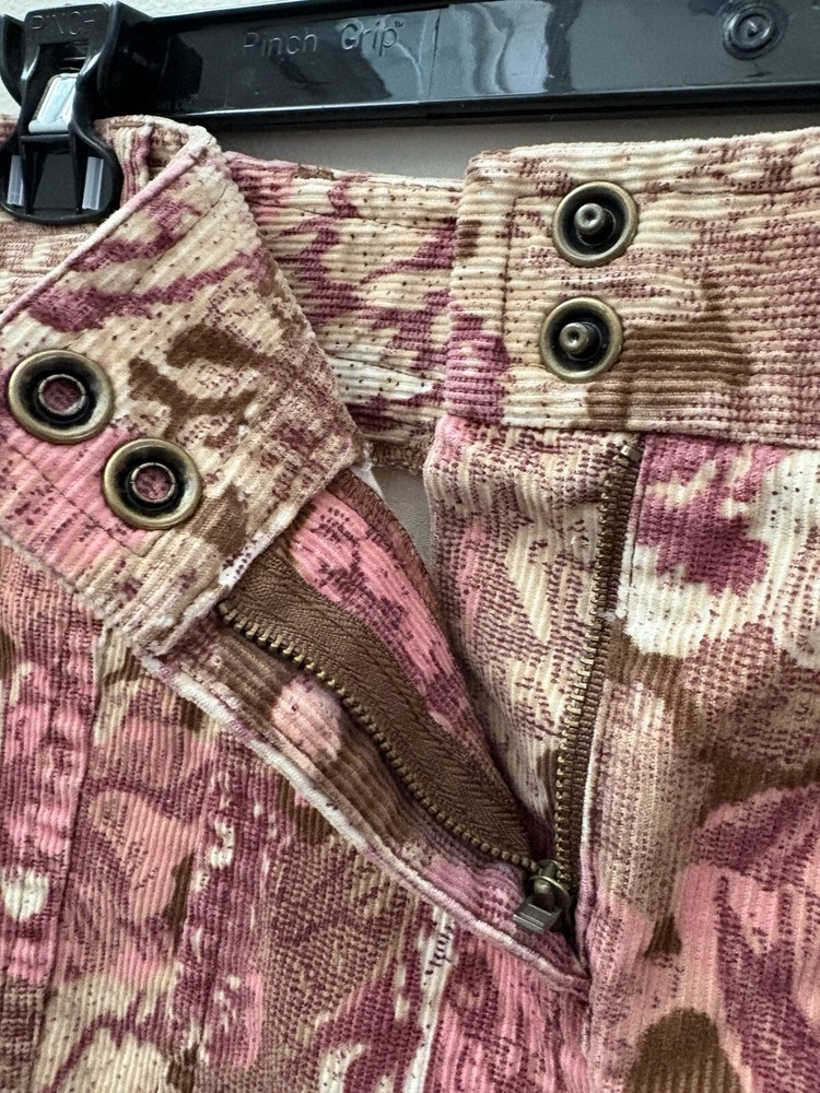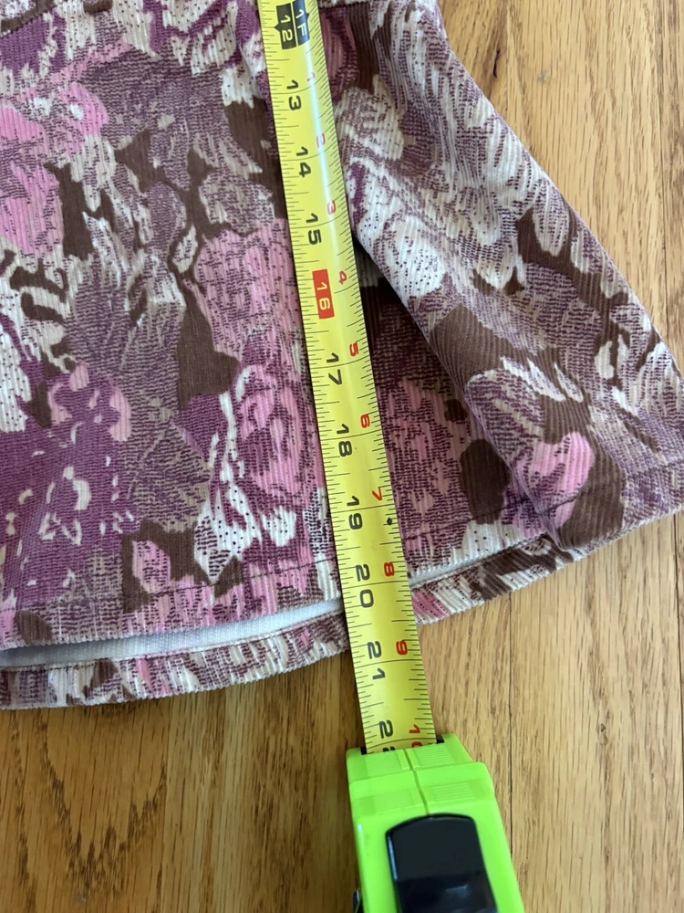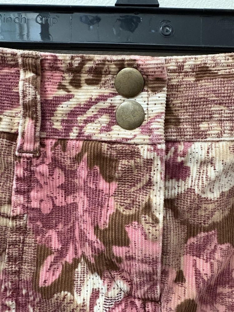 This Loft by Ann Taylor skirt is a size 6 A-line style in a brown and pink floral corduroy fabric. It features a zip and snap closure. The skirt has a feminine, cottagecore design with a touch of country charm, making it a versatile and stylish piece for your wardrobe.